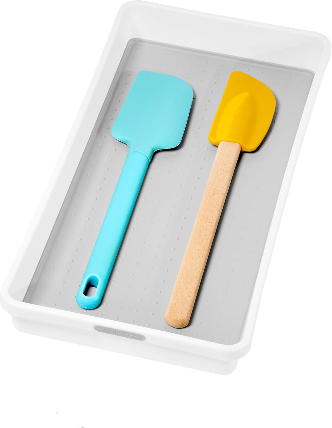 Madesmart Organizer Bin Non-Skid Feet 15.5" X 6.6" X 2.1" Plastic White With Gray