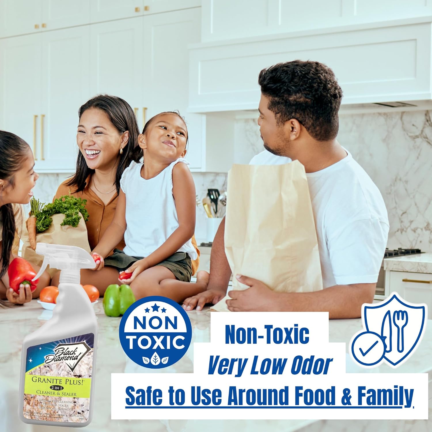 Black Diamond Stoneworks GRANITE PLUS! 2 in 1 Cleaner & Sealer for Granite, Marble, Travertine, Limestone, Ready to Use! 32 Fl Oz