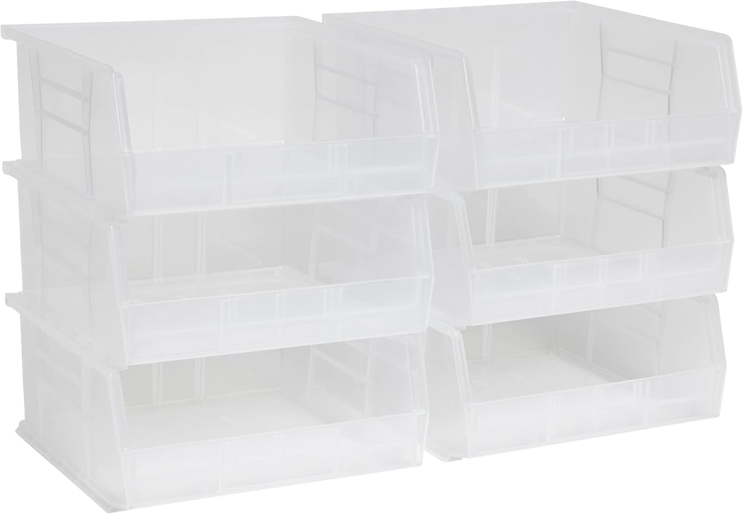 Akro-Mils 30235 AkroBins Plastic Storage Bins, Space-Saving Stackable Bins for Garage, Pantry, Craft Organization, 11" x 11" x 5", Clear, 6-Pack