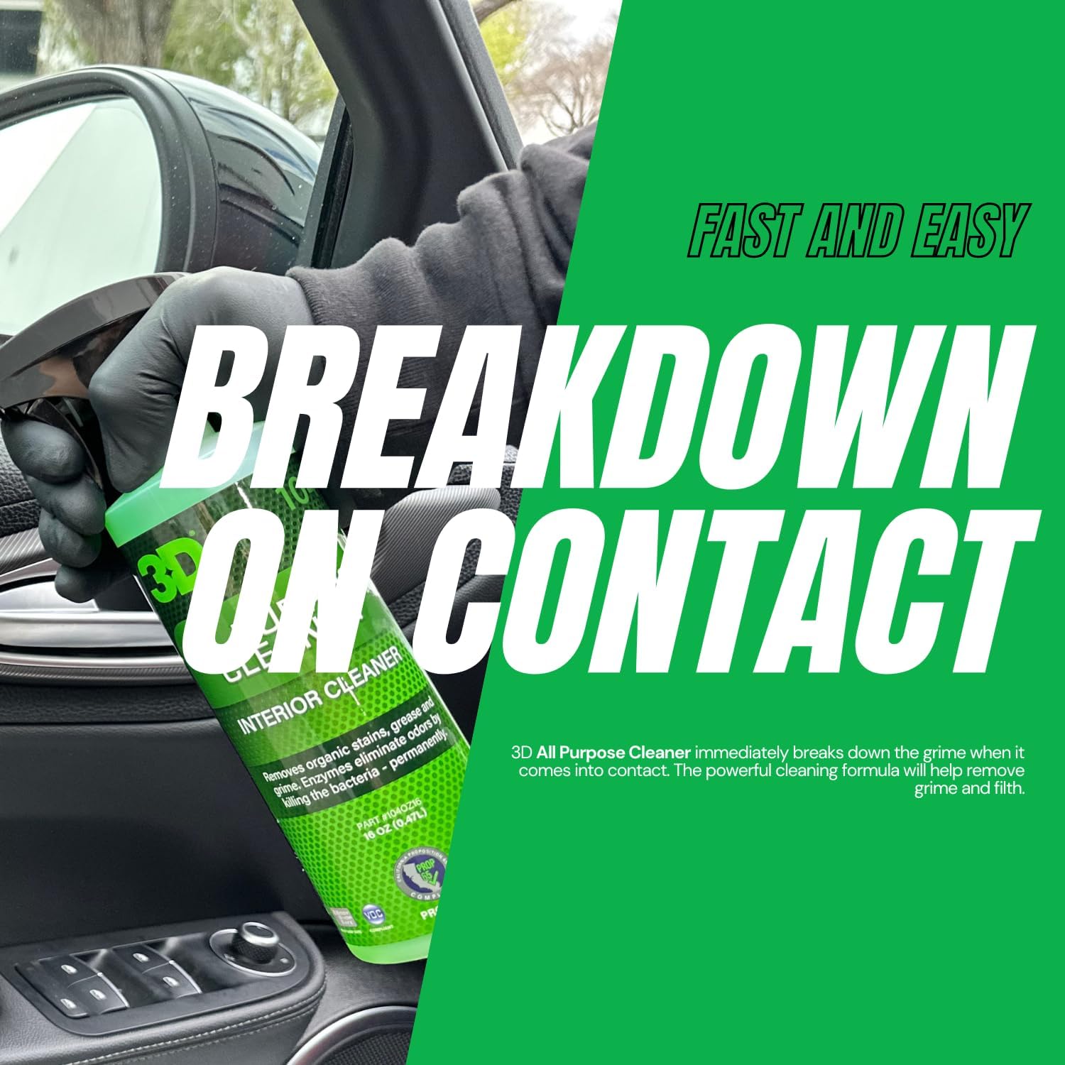 - Next-Level All Purpose Cleaning Power: 3D’s All Purpose Cleaner isn’t just another product. It’s engineered with high-grade ingredients to dissolve dirt, grease, oil, and grime on nearly any surface—leather, vinyl, rubber, plastic, fabric, and more