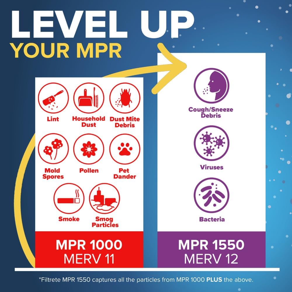 - COUNTLESS MICROPARTICLES: With a 1000 MPR and MERV 11 rating, your Filtrete Filter will help capture many microparticles from the air passing through it
