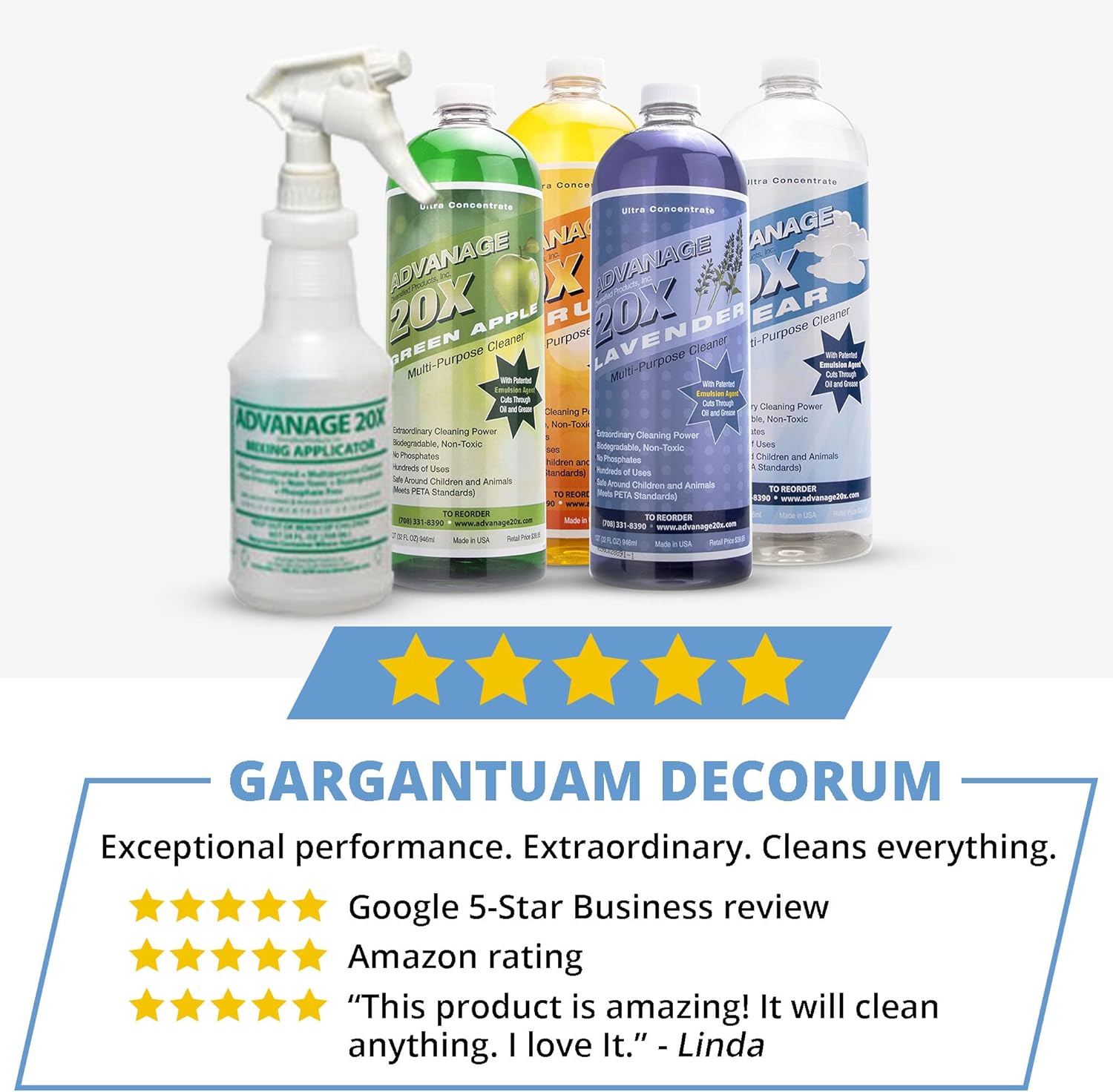 - Safe & Eco-Friendly – Advanage The Wonder Cleaner is one of the most trusted all purpose cleaners on the market. This multisurface cleaner concentrate is PETA-certified, phosphate-free, and safe to use. Plus, it’s available as an all purpose cleaner refill—perfect for sustainable, worry-free cleaning.