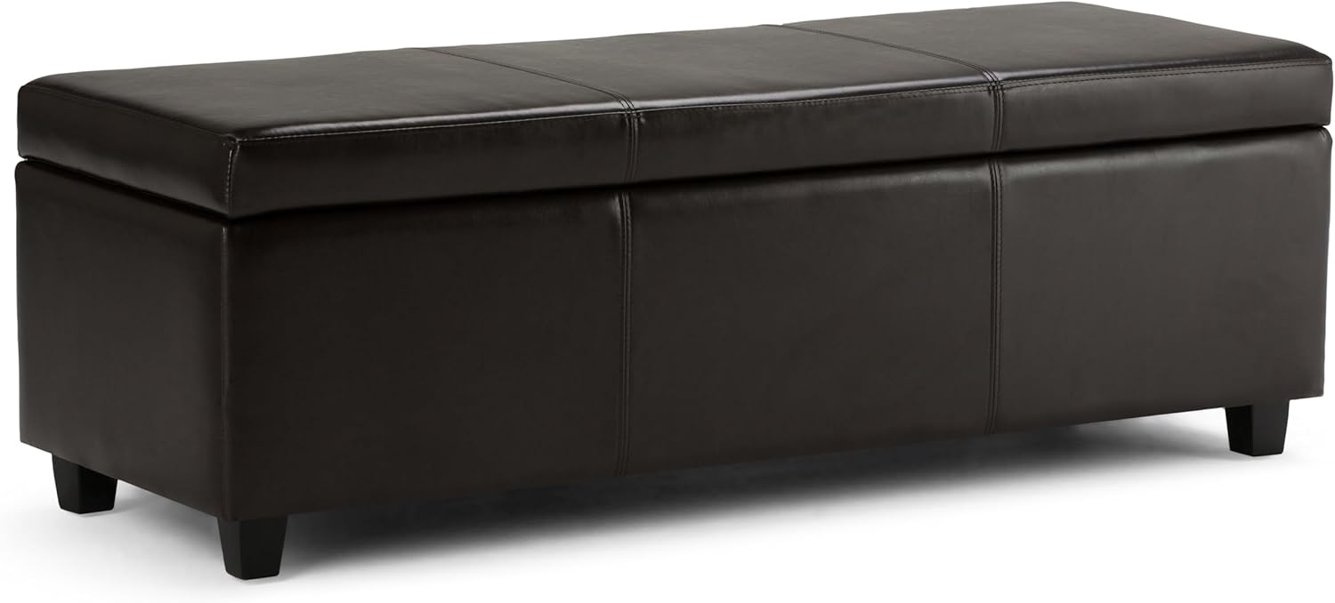 SIMPLIHOME Avalon 48 inch Wide Contemporary Rectangle Storage Ottoman Bench in Tanners Brown Vegan Faux Leather, Assembled, For the Living Room, Entryway and Family Room