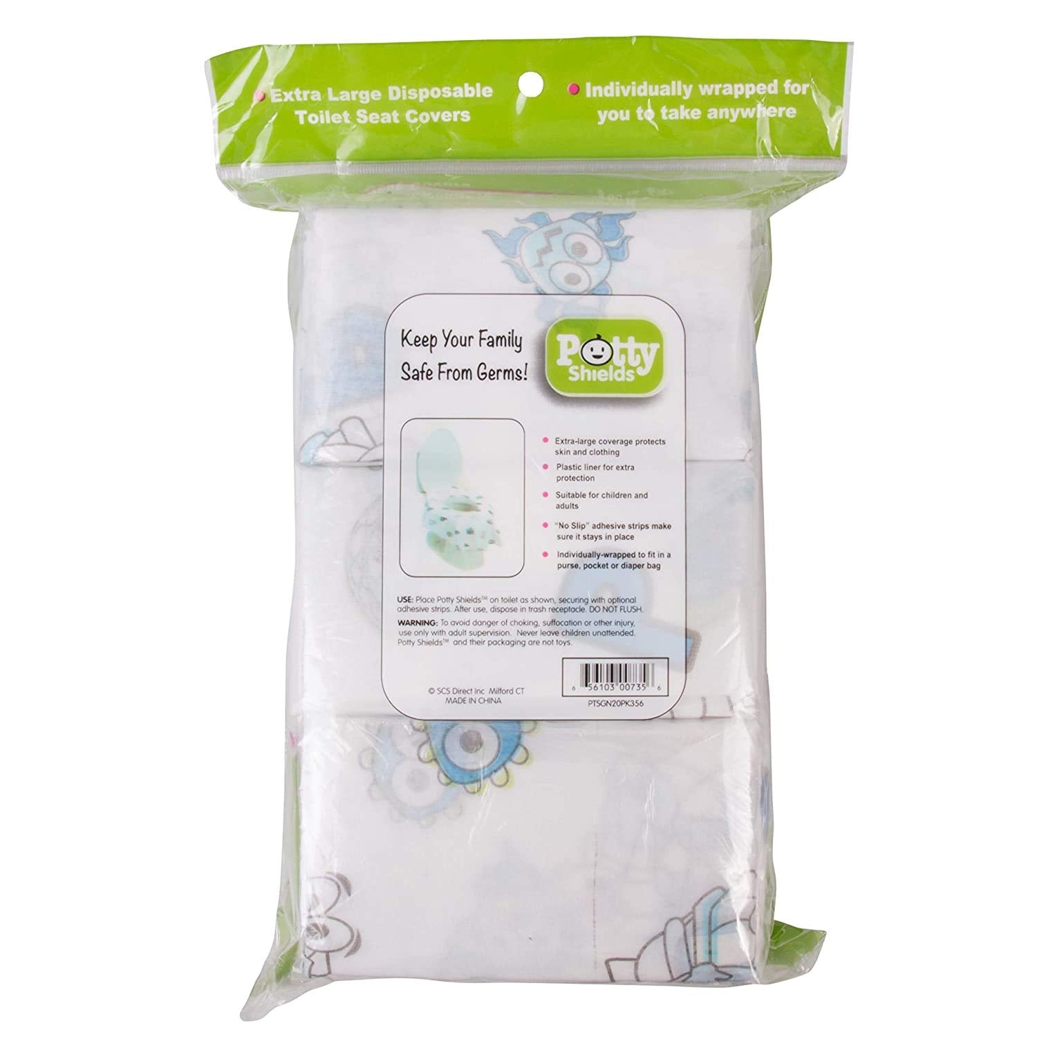 - Individually Wrapped for Convenience - each Potty Shield is individually wrapped for on-the-go use as they fit in purses, pockets, diaper bags, and luggage.
