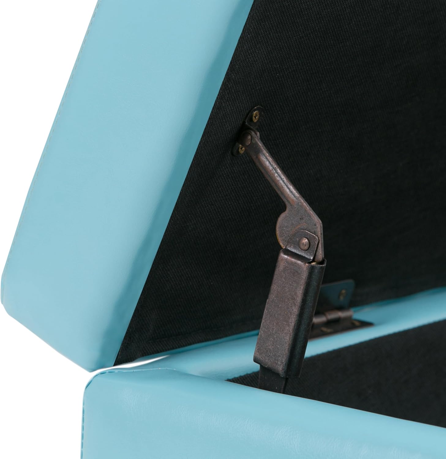 SIMPLIHOME Avalon 48 inch Wide Contemporary Rectangle Storage Ottoman Bench in Soft Blue Vegan Faux Leather, Assembled, For the Living Room, Entryway and Family Room