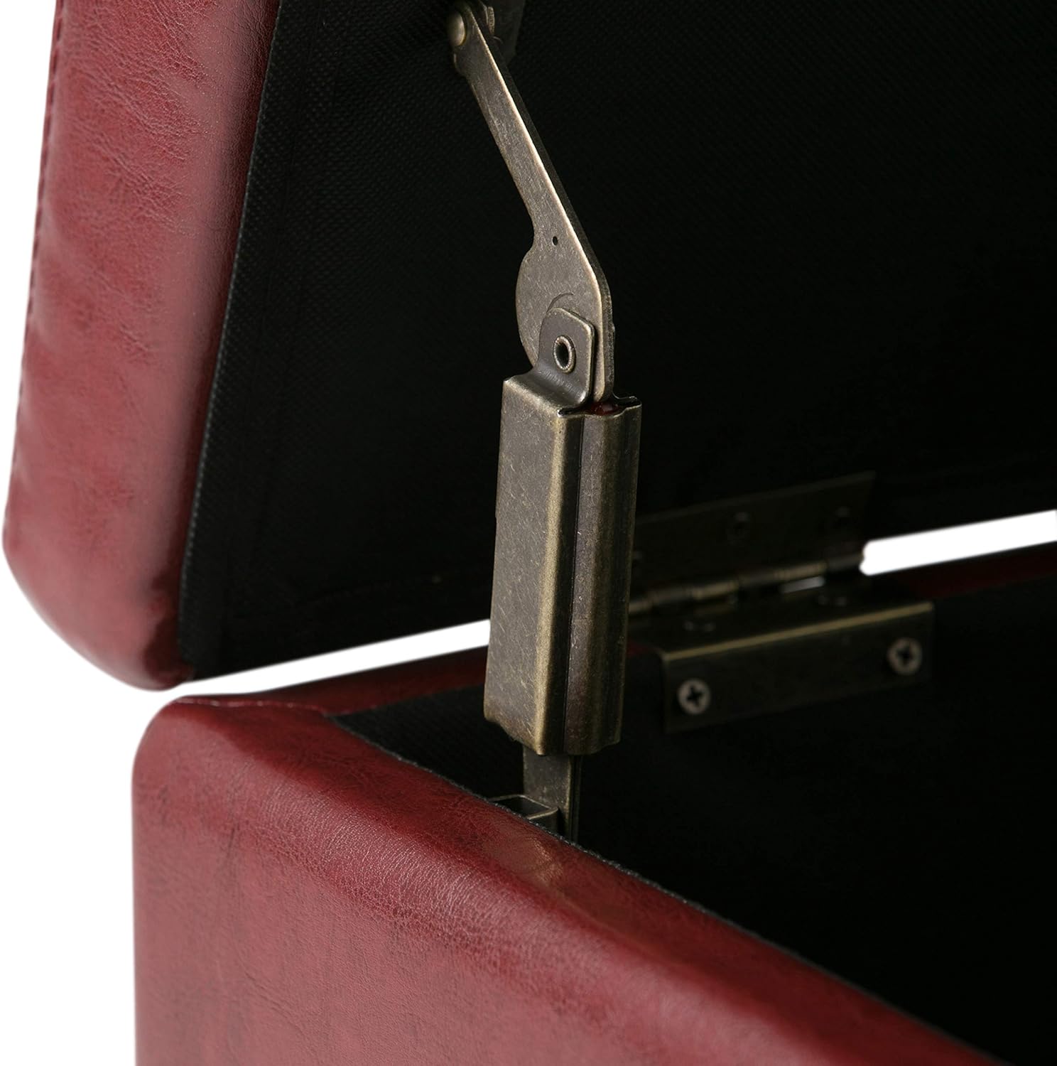 SIMPLIHOME Avalon 48 inch Wide Contemporary Rectangle Storage Ottoman Bench in Red Vegan Faux Leather, Assembled, for the Living Room, Entryway and Family Room