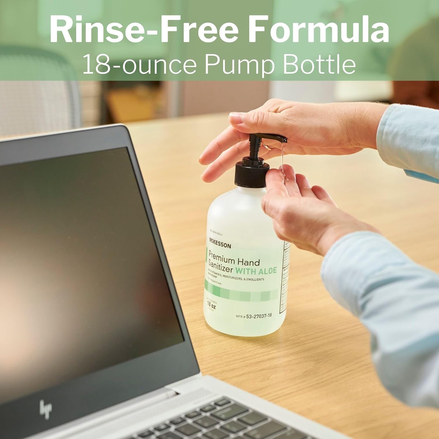 McKesson Hand Sanitizer with Aloe, 18 oz Pump Bottle [Pack of 12] – Bulk, 70% Ethyl Alcohol, Spring Water Scent, No-Rinse Gel with Vitamin E and Moisturizers, Medical-Grade Sanitizer