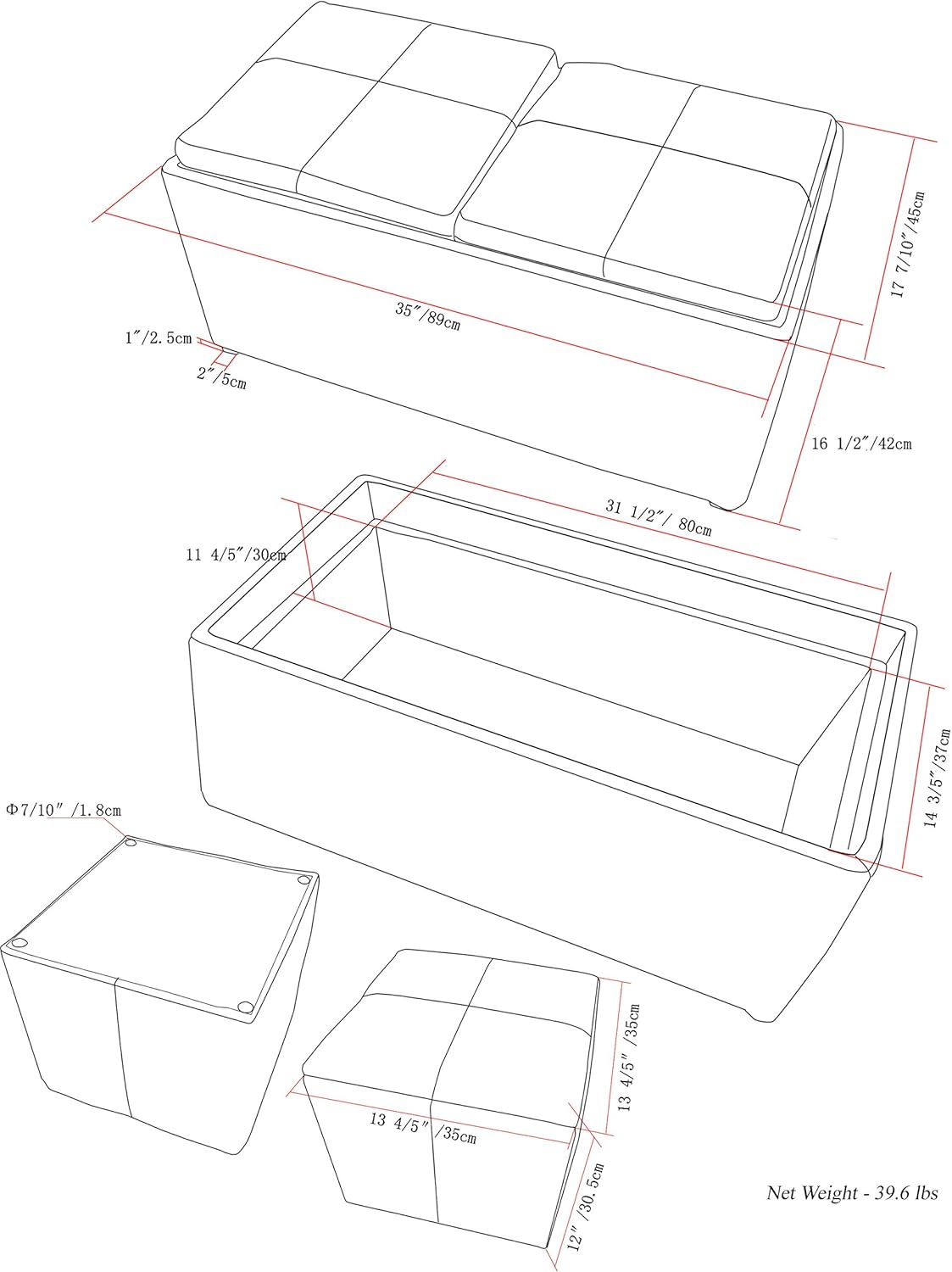- Product Dimensions : 17.7"D x 35.5"W x 16.5"H