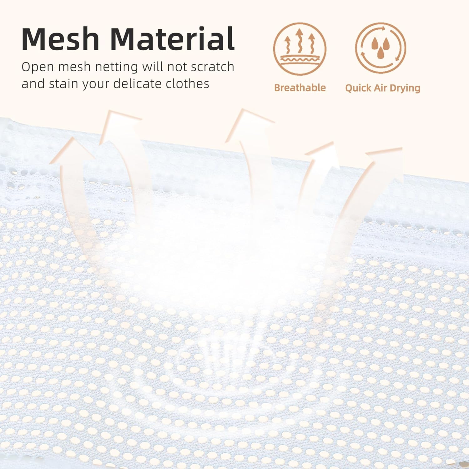 - ăMesh Design & Fast DryingăThe open mesh netting prevents scratching and staining of delicate clothes. This sweater drying rack flat ensures airflow for quick drying and allows sweaters, delicate garments, pillows, and toys to lay flat while drying.
