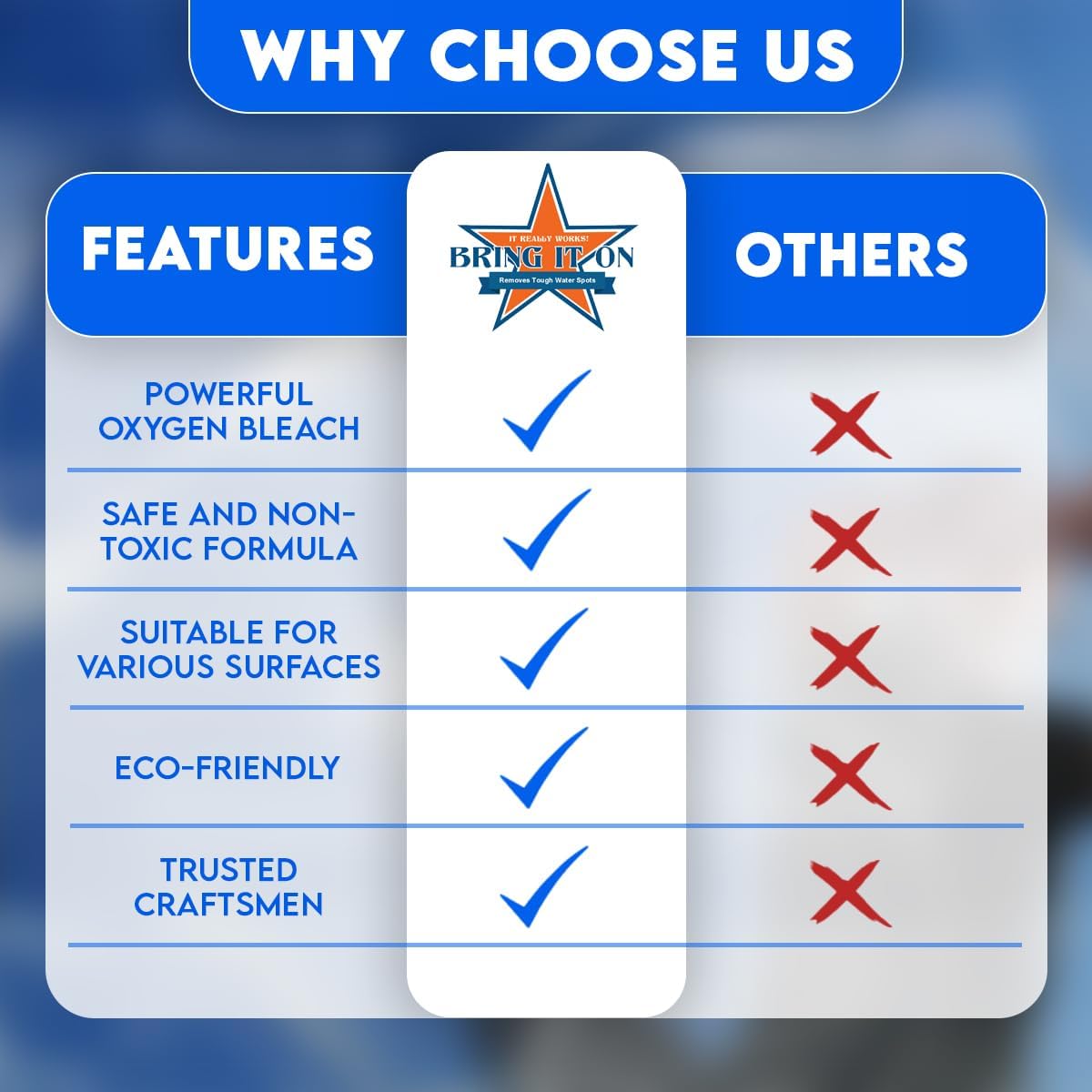 - FOAMY POWERFUL CLEANING – Bring It On Cleaner’s rich foam adheres to surfaces, easily tackling stains, soap scum, and residue. It acts as a hard water stain on glass remover and soap scum remover on various surfaces, leaving your bathroom spotless without harsh chemicals. Perfect for water stain remover for glass in everyday cleaning.