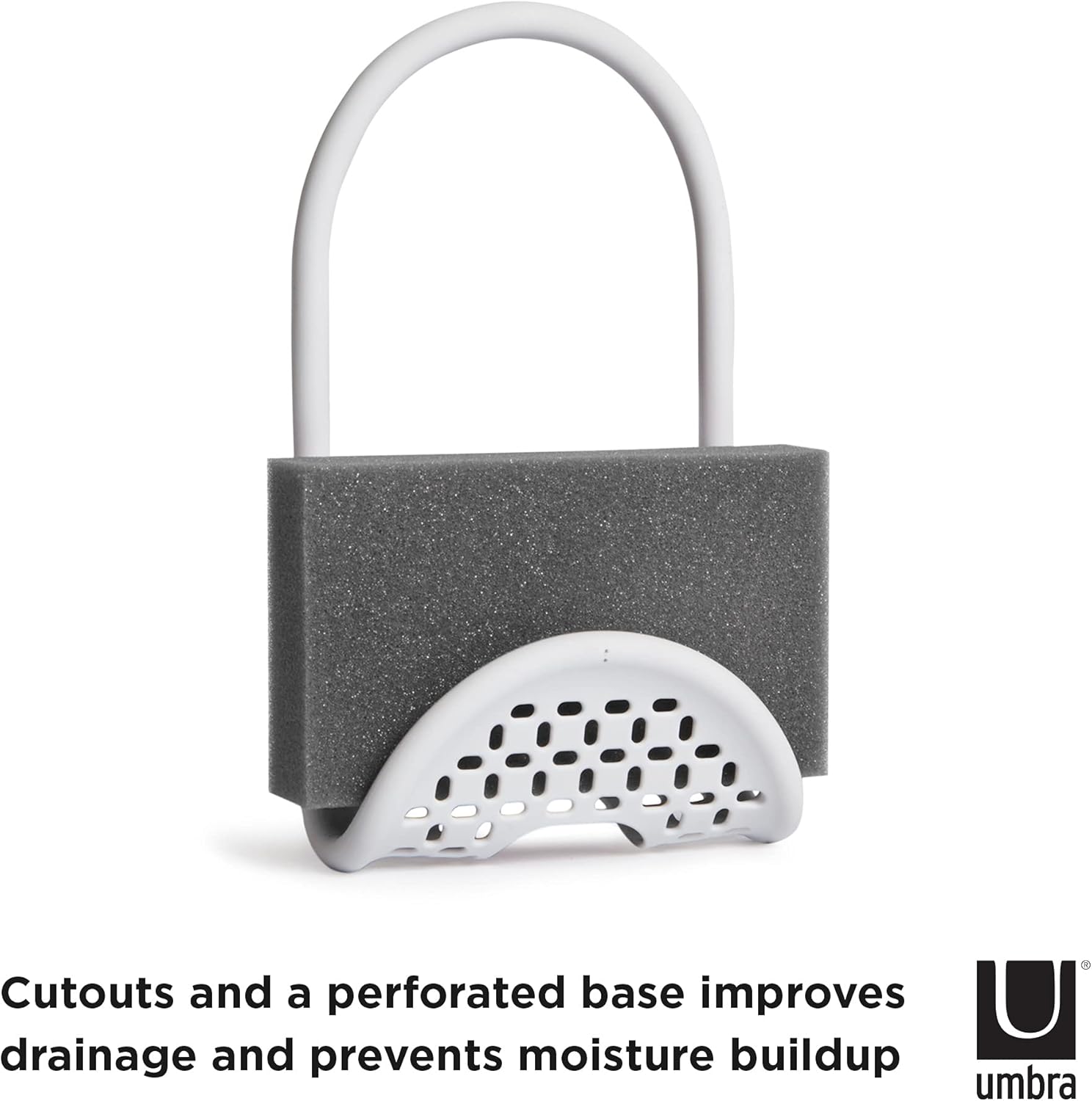 Umbra Sling Flexible Sink Caddy, Non-Slip – Holds Sponge, Scrubbing Brush or Dishrag, White