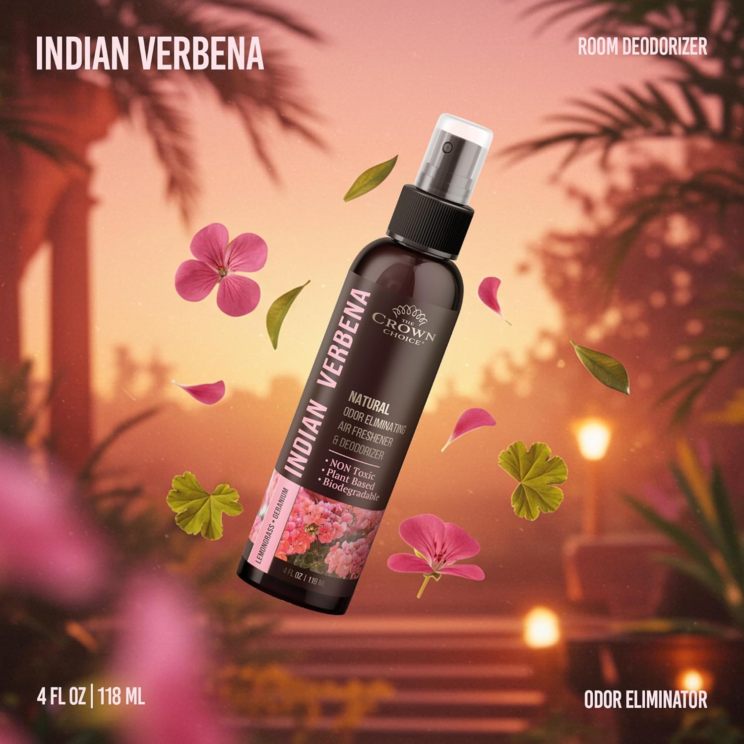 Non-Toxic Odor Eliminator, Natural Geranium & Lemongrass Air Freshener Spray for Home, Room, Closet & Couch Deodorizer, Long Lasting Bathroom & Toilet Freshener, Safe for Kids & Pets - 4 oz Pack of 1