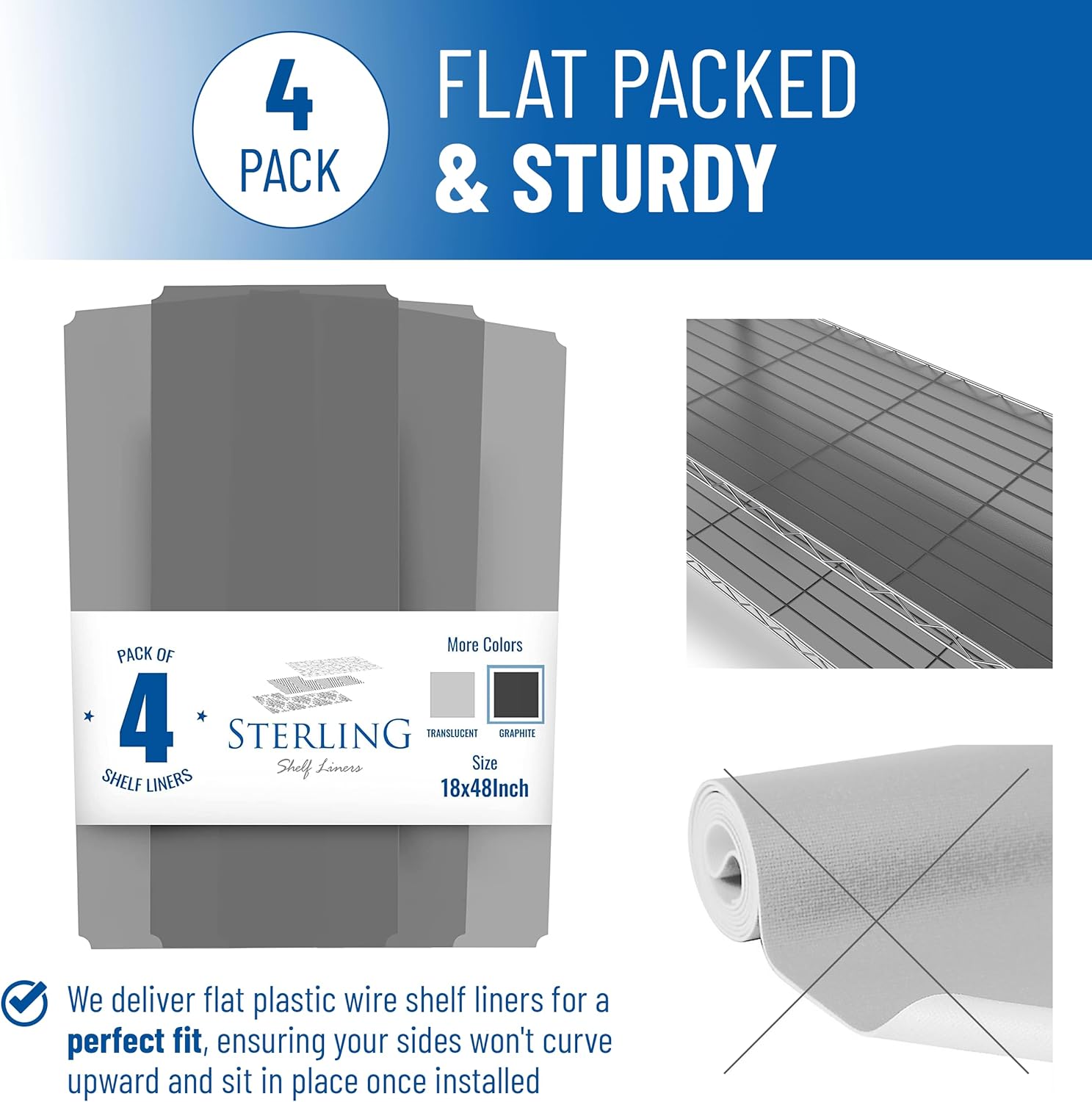 Sterling Shelf Liners Wire Rack Covers: Plastic Shelf Liner Cover for Wire Shelving: Cover Mats for Shelves in Pantry, Closet, and More: 18x48 Inch: Graphite, Set of 4
