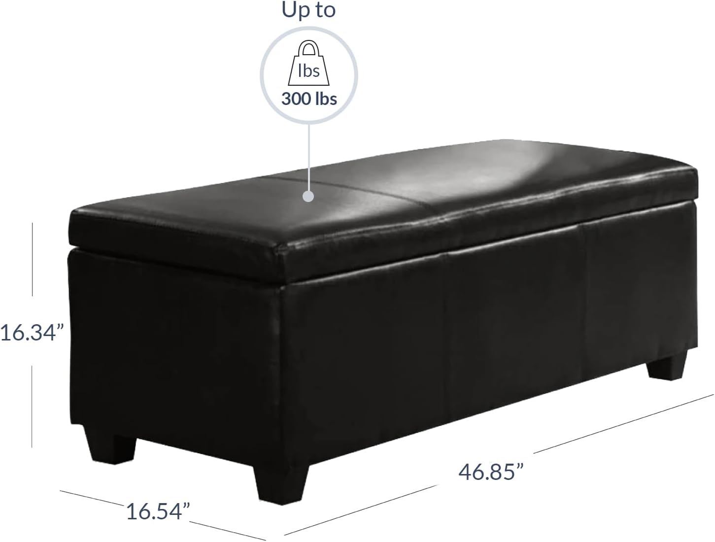 BELLEZE Storage Faux Leather Ottoman, 47 Inch Bench Bedroom Bench with Safety Close Hinge, Extra Long Ottoman with Storage for Living Room, Entryway, Hallway, Foot Rest, Support 300lbs - Black