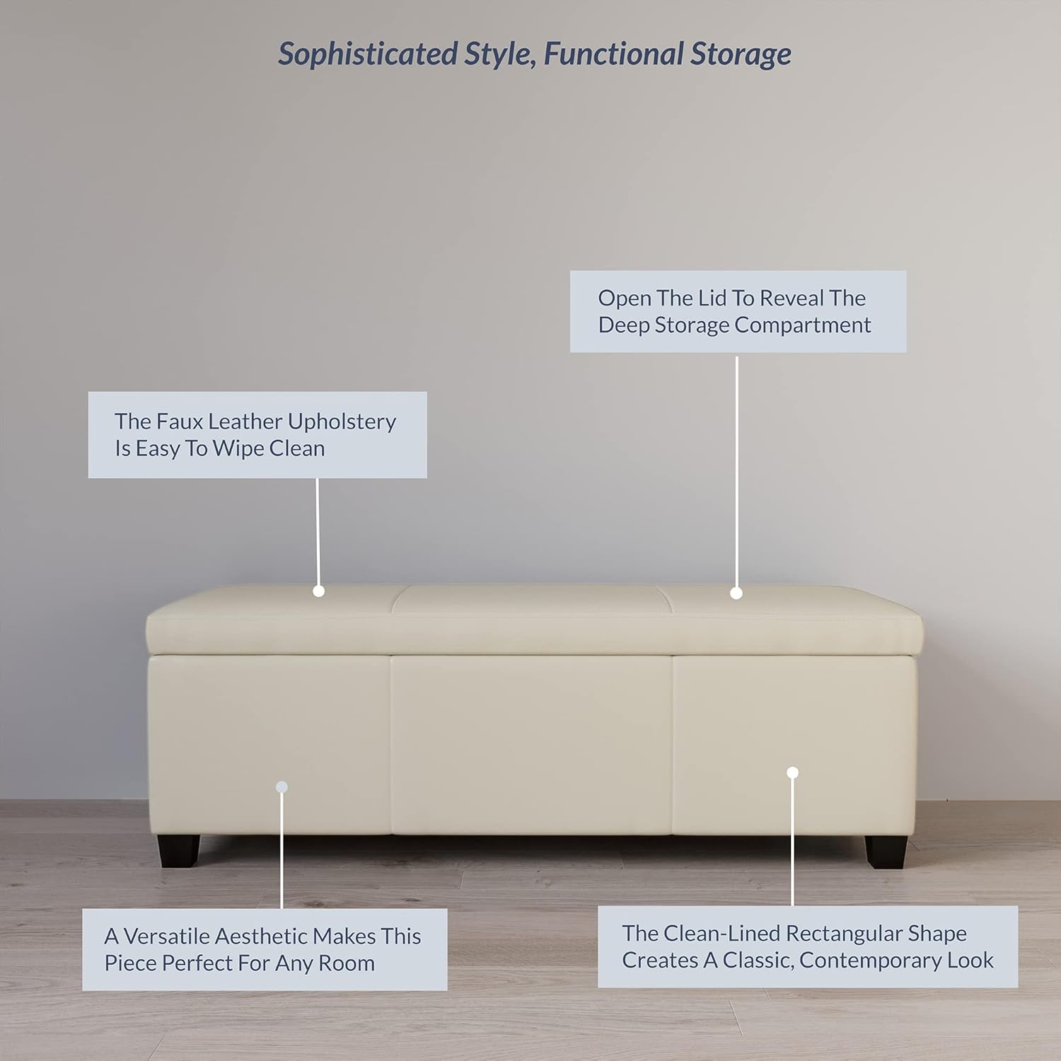 BELLEZE Storage Faux Leather Ottoman, 47 Inch Bench Bedroom Bench with Safety Close Hinge, Extra Long Ottoman with Storage for Living Room, Entryway, Foot Rest, Support 300lbs - Cream
