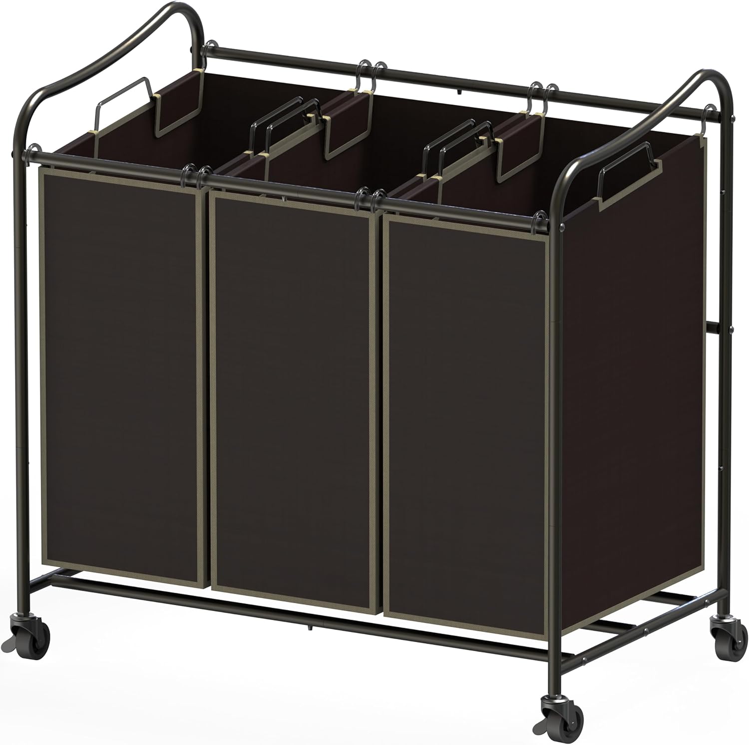 Simple Houseware Heavy Duty 3-Bag Laundry Sorter Rolling Cart, Bronze