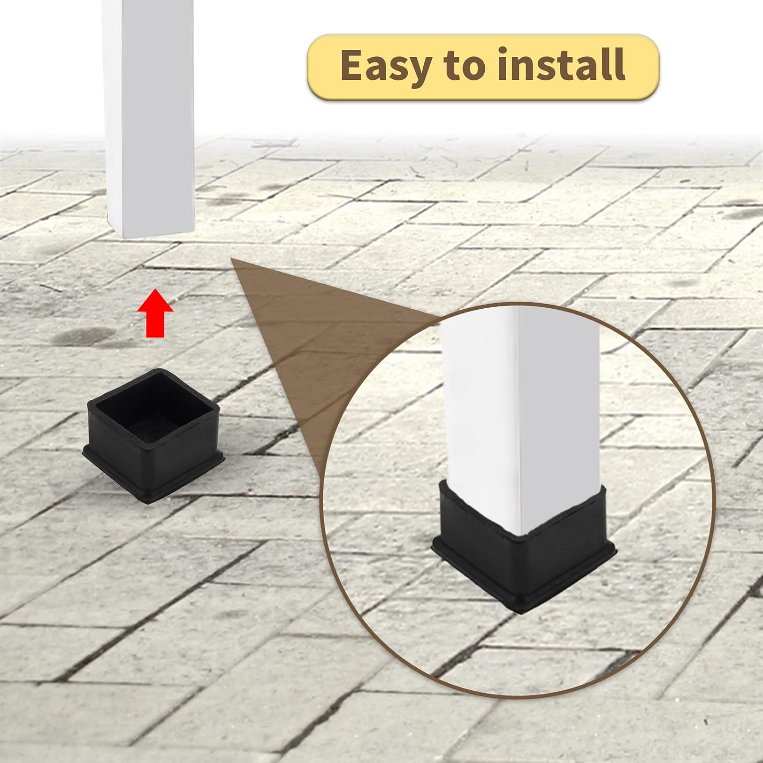 Flyshop Non-Slip Thick Rubber Leg Tips Floor Protectors Square Chair Leg Caps, 20pcs, Black, 40 mm x 40 mm, 1-9/16" x 1-9/16"