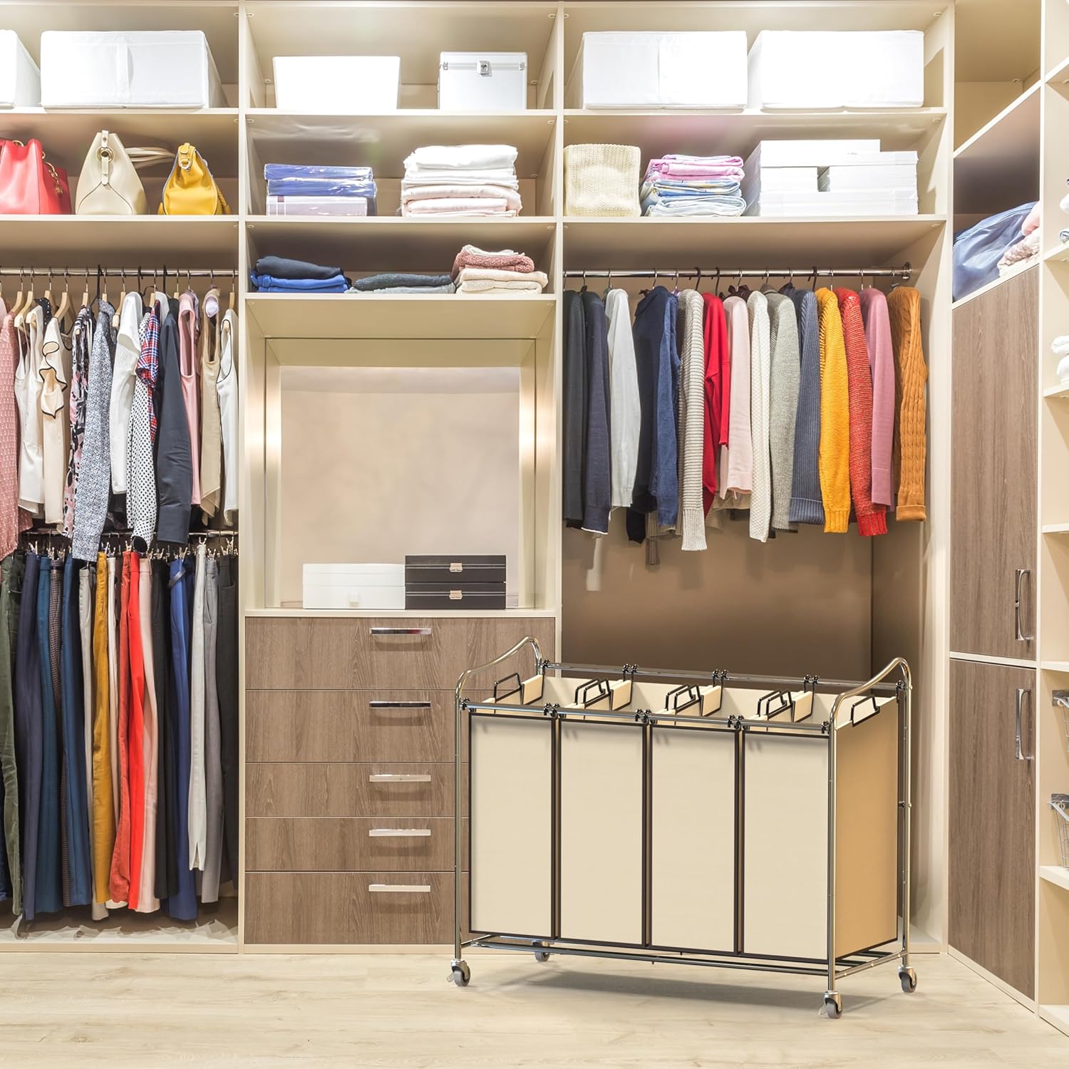 Simple Houseware 4-Bag Heavy Duty Rolling Laundry Sorter Cart, Chrome