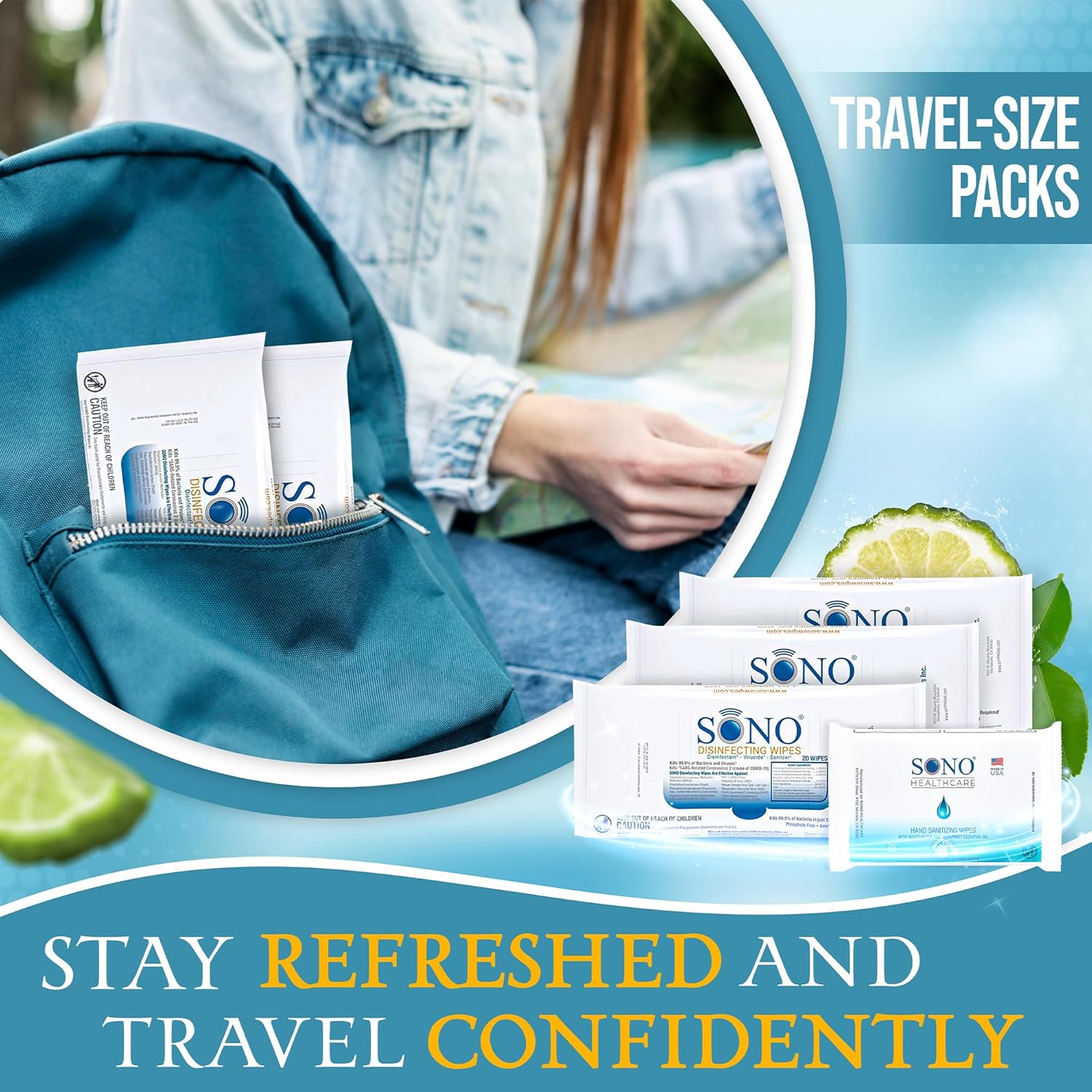 - SPRING-FRESH CLEANING: Embrace the season with SONO's compact disinfecting wipes, providing swift and refreshing cleaning on-the-go. Effectively eliminating harmful particles, they offer a convenient and safe solution for high-touch areas during your favorite Spring activities.