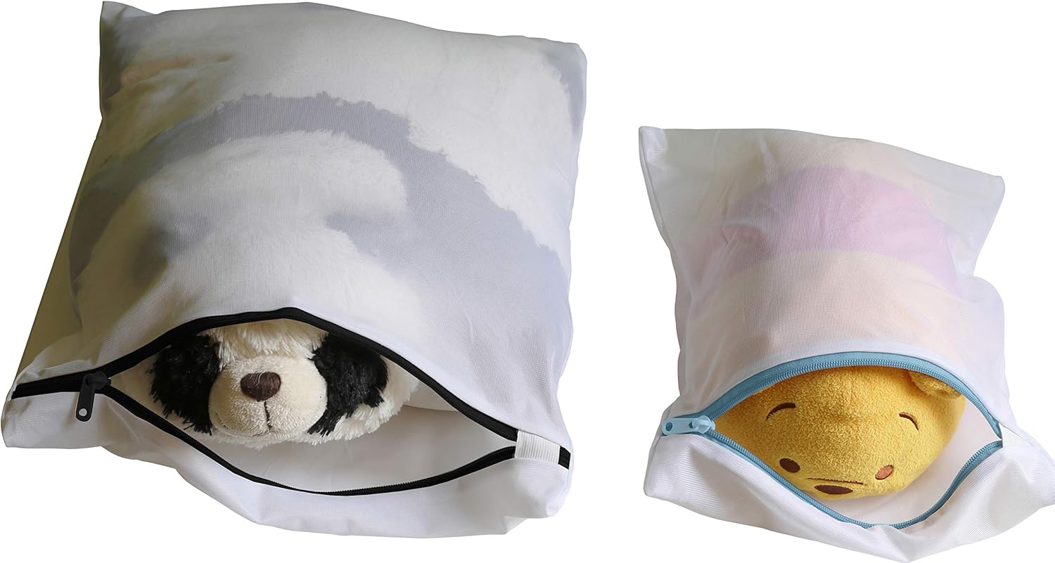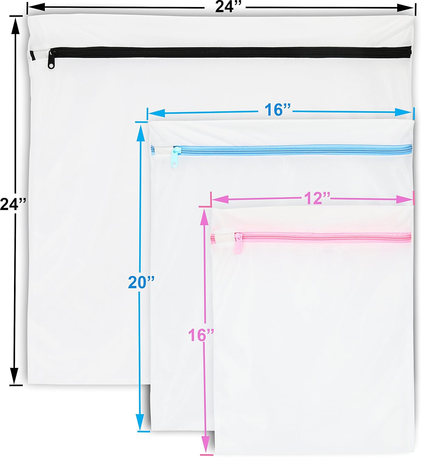- Durable mesh wash bag and rust-free zippers. XL Black, L Blue, M Pink zippers.