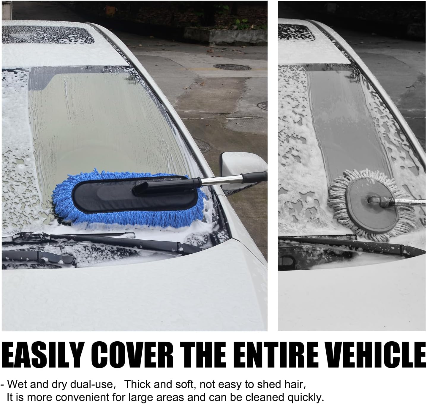 - 4. User-Friendly & Durable Design Built to last with a reusable and machine-washable design. The lightweight, extendable stainless steel handle is anti-slip and comfortable to use, providing a secure grip while protecting your car's finish from scratches.