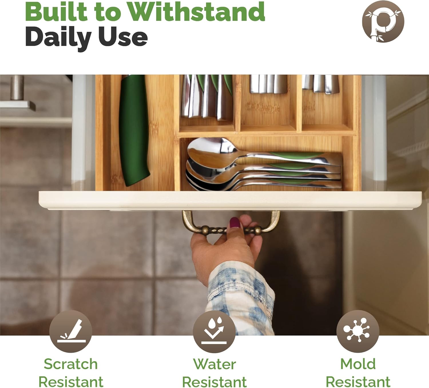 - SLIP RESISTANT & DEEPEST in the market: The only silverware drawer organizer that is slip-resistant and 2.4" deep. This deep silverware tray Increases storage capacity in your kitchen drawer to best fit a variety of utensils (internal depth 2β). The non-slip silicone feet keep your bamboo utensil holder in place. So donβt worry, your flatware organizer tray will not move to the back of the drawer ever.