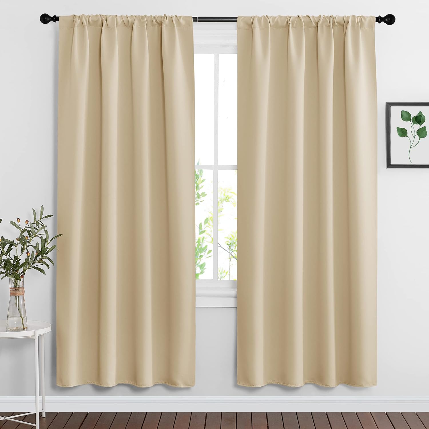 RYB HOME Blackout Shades Curtains Window Dressing (Width 42 by Height 72 in, Biscotti Beige, 2 Pcs) Energy Saving Curtain Draperies Soft Solid Polyester for Kitchen Bedroom