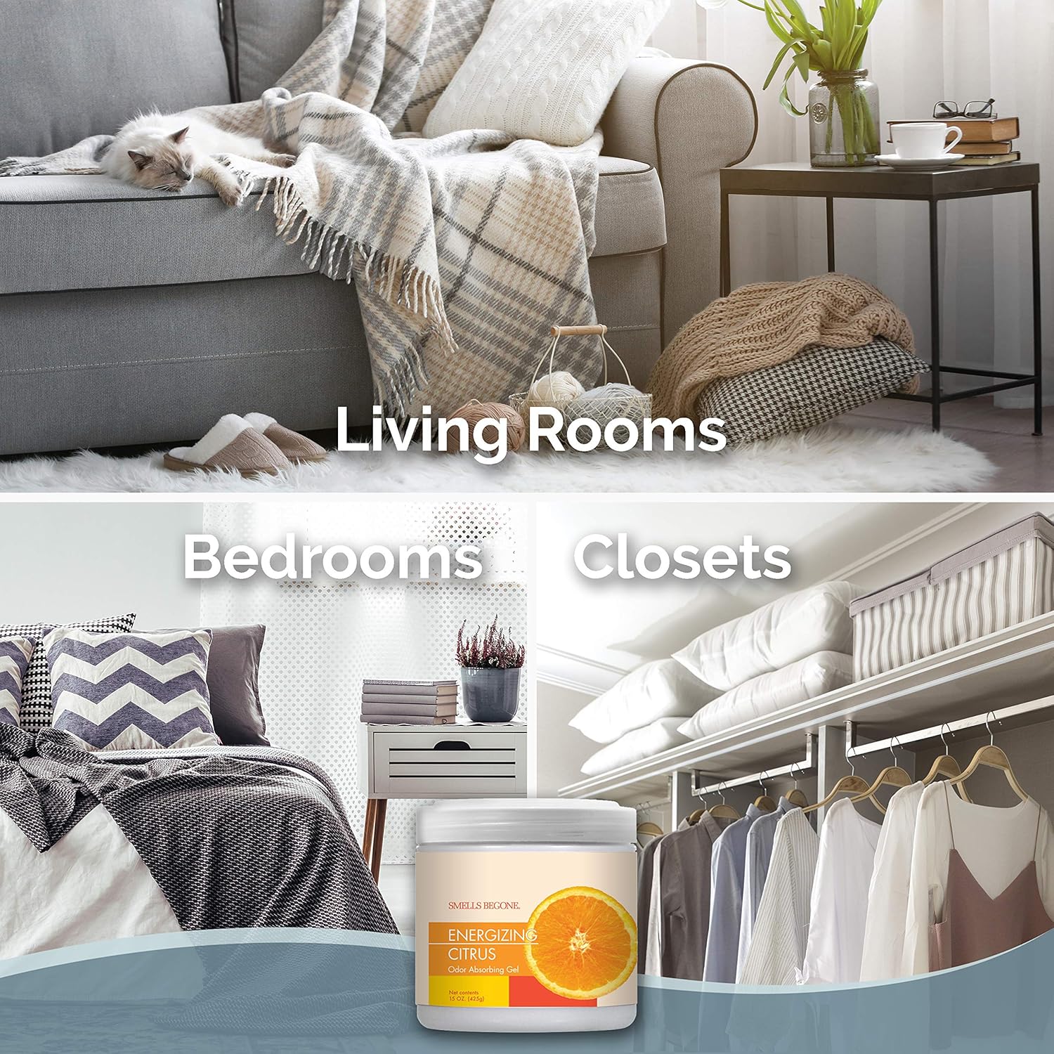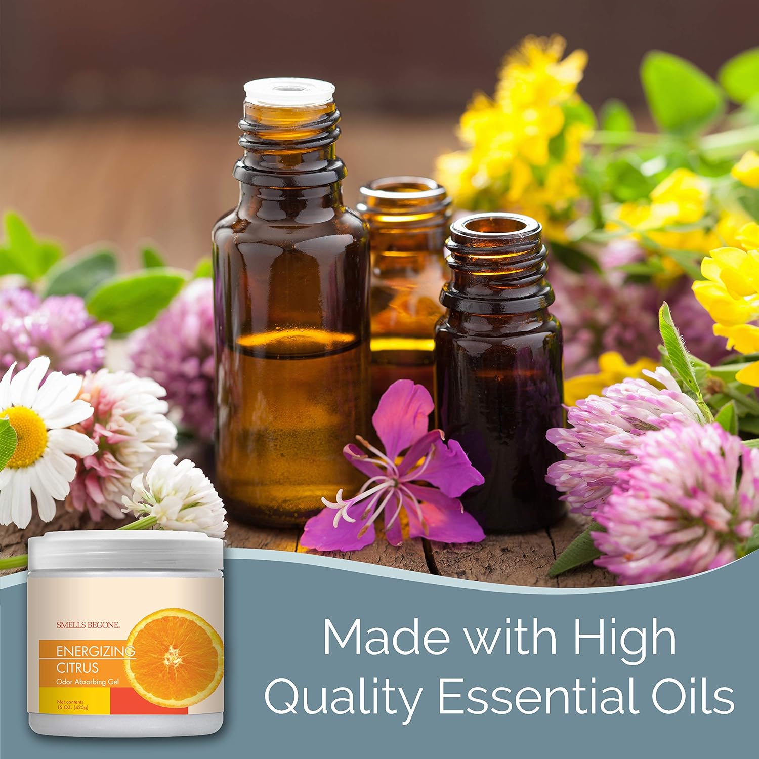 SMELLS BEGONE Air Freshener Odor Absorber Gel - 15 oz, Pack of 2 - Absorbs and Eliminates Odor in Pet Areas, Bathrooms, Cars, & Boats - Made with Essential Oils - Energizing Citrus Scent