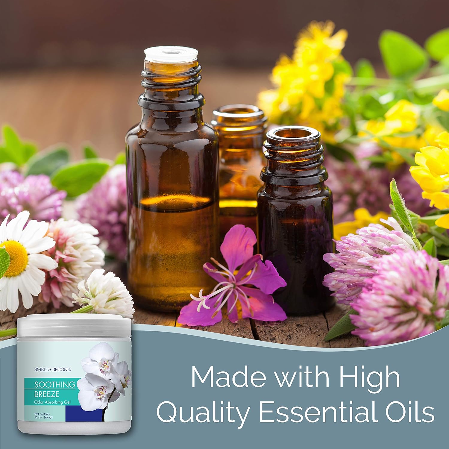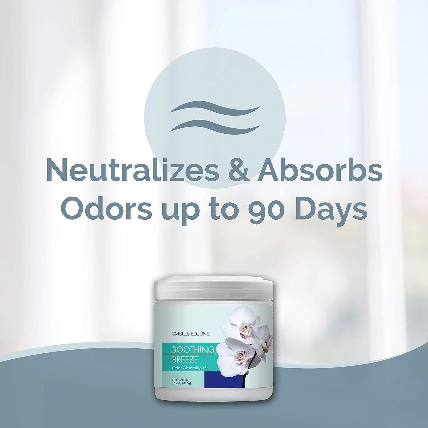 SMELLS BEGONE Air Freshener Odor Absorber Gel - 15 oz, Pack of 2 - Absorbs and Eliminates Odor in Pet Areas, Bathrooms, Cars, & Boats - Made with Essential Oils - Soothing Breeze Scent