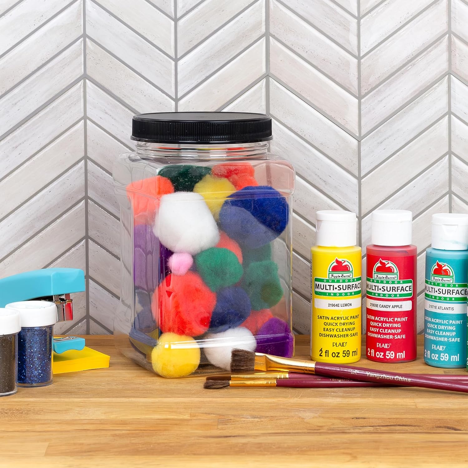 Cornucopia Brands 48oz Square Plastic Jars (3-Pack); Clear Rectangular 6-Cup Canisters w/Black Lids, Easy-Grip Side