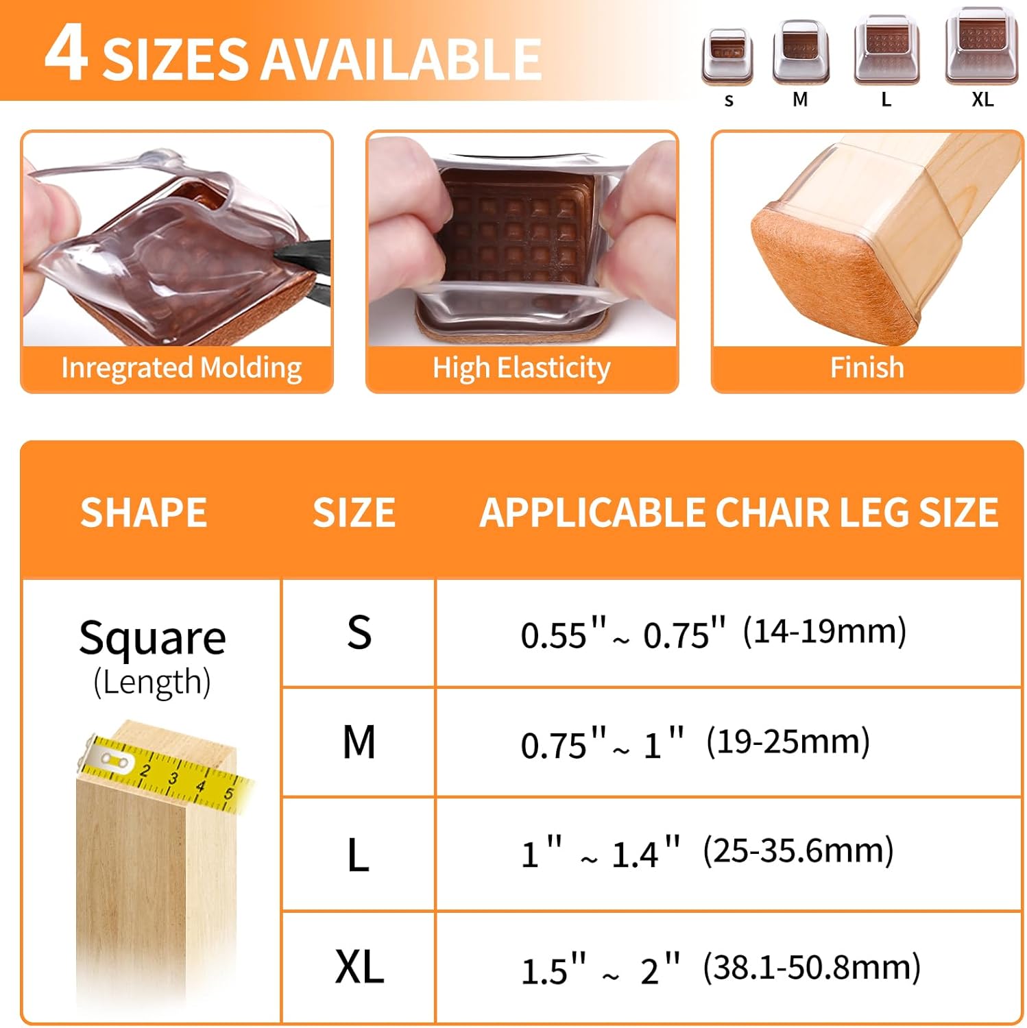 - ☛【Applicable Range】- Square S size fit Square Leg Side Length 3/5" to 7/10" (15-18mm) furniture legs.