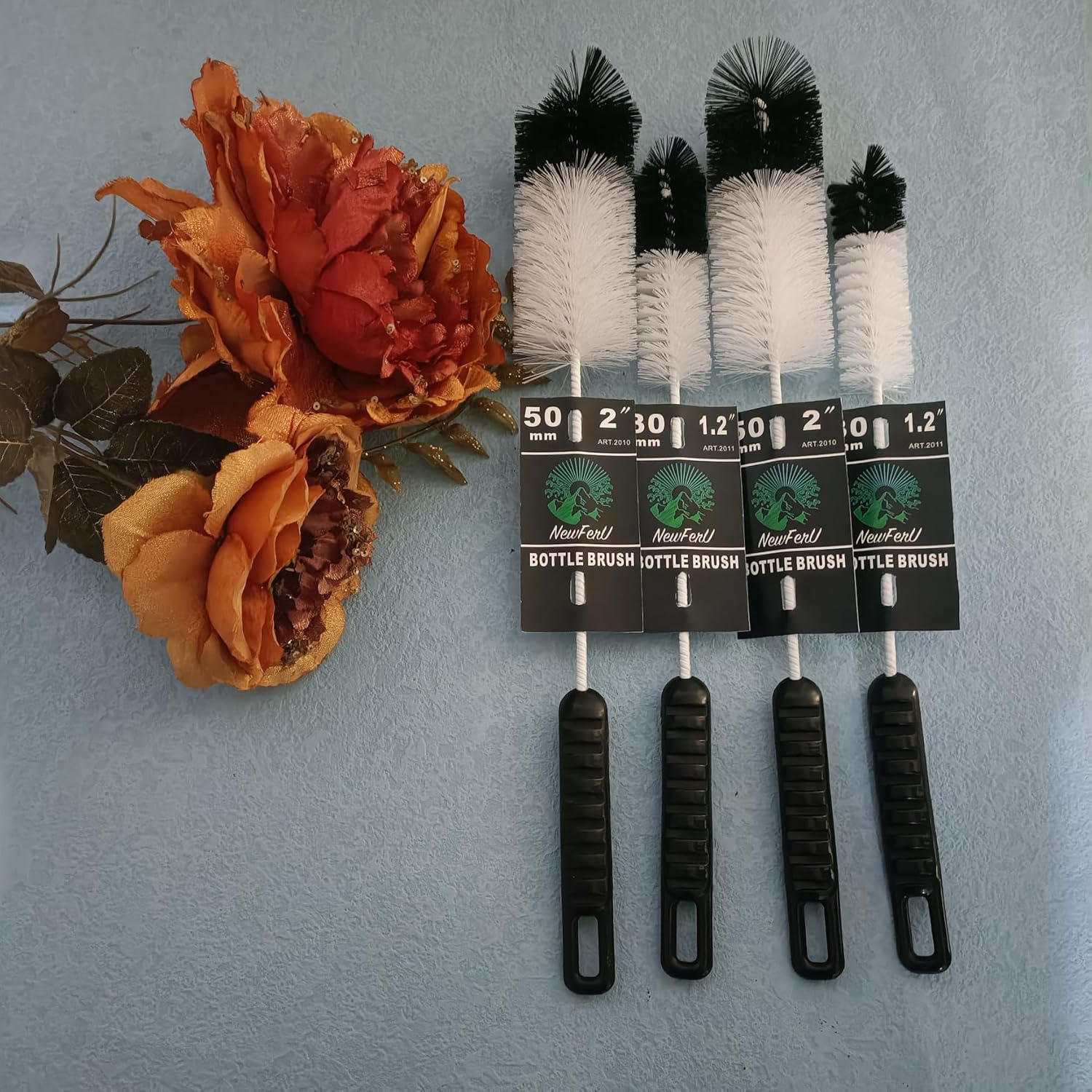 - NewFerU Creative Wire Bottle Cleaning Brush Set in two sizes Small Large Thin with comfort grip;