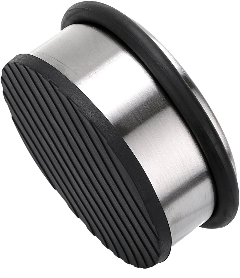 - ATTRACTIVE DECORATIVE STOPPER FOR MOST DOORS - Tired of your doors swinging to and fro? An attractive door stop and don't need to go the permanent route of having to attach them to the doors. They are an attractive brushed nickel and look just fine sitting next to the door when not in use. Heavy stainless steel build,and rubber clamp. It is very easy to place and remove with one foot. These have an awesome look, and could go well with retro, contemporary, or modern style.