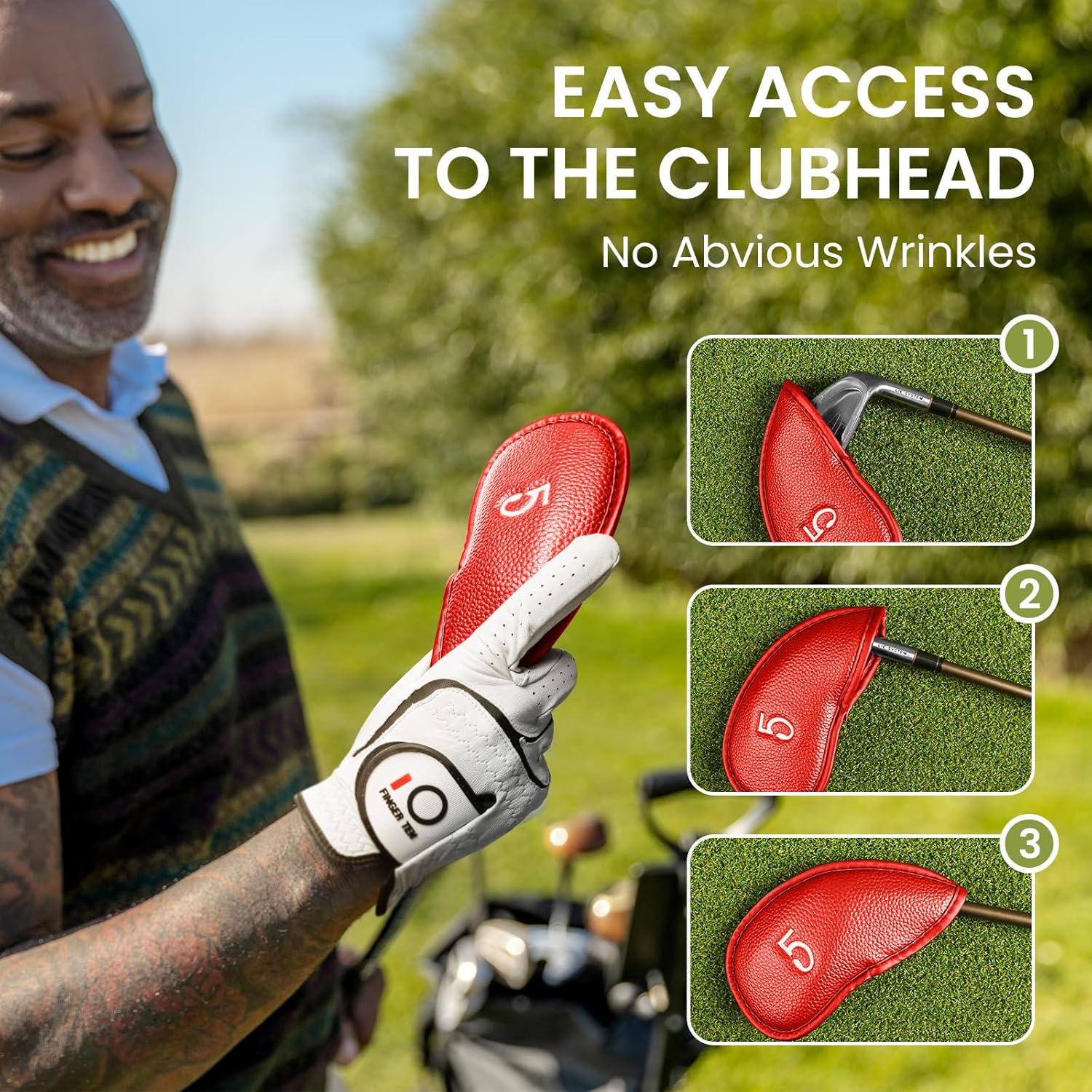 - Keep Your Irons Safety Anywhere: These Premium Golf Head Covers are a Must-have for Every Golfer who Values Protection and Style. Made from High-quality Synthetic Leather, They’re Water-resistant and Provide a Snug Club Fit to Shield Your Irons from Scratches, Dings, and Wear. Designed for Both Daily Play and Travel Convenience, They Add Sleek Aesthetic Appeal to Your Golf Bag Organization.