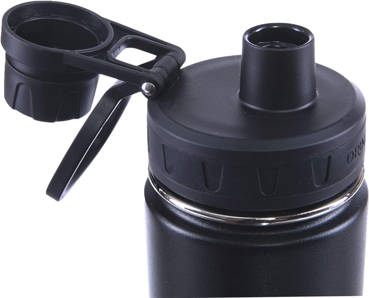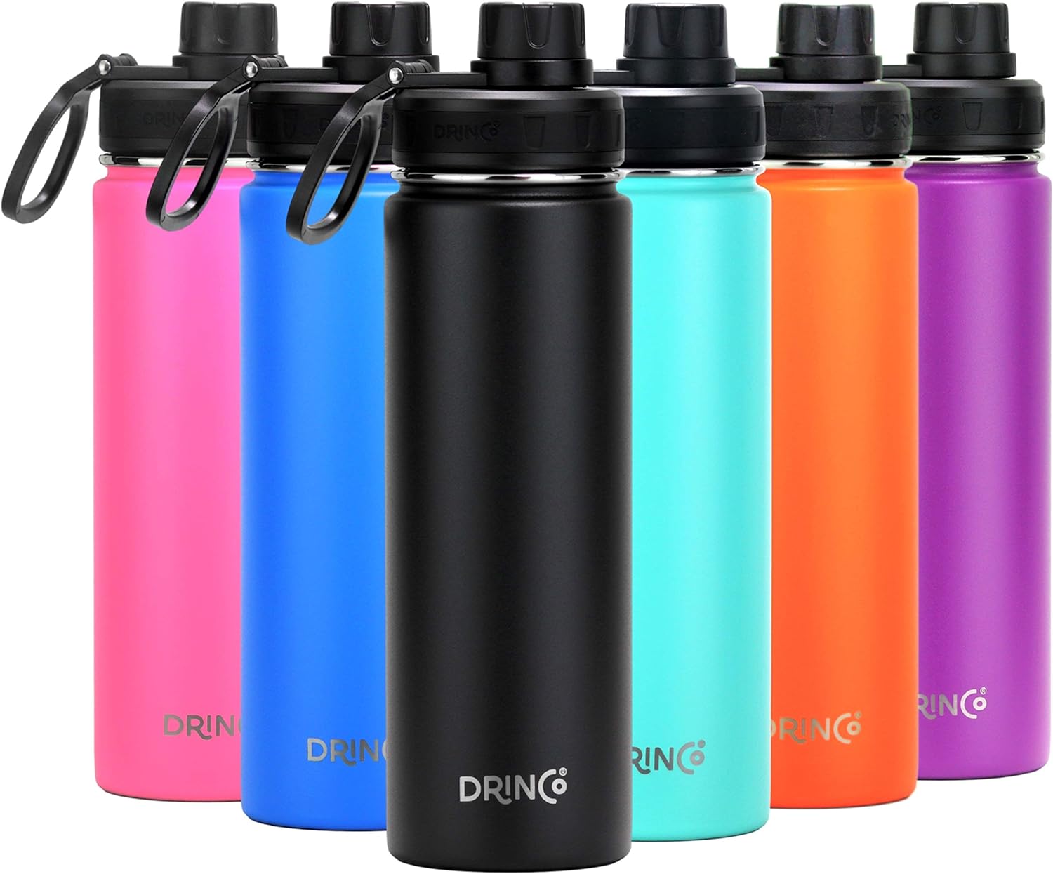 Drinco Stainless Steel Water Bottle Spout Lid Vacuum Insulated Double Wall Water Bottle Wide Mouth (40oz 32oz 22oz 18oz 14oz) Leak Proof Keep Cold Sport Camping Hiking (22 oz, 22oz Black)