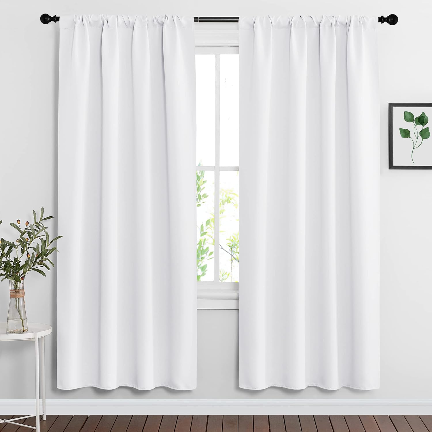 RYB HOME Window Decor Kitchen Curtain Drapes - 50% Blackout Thermal Insulated Curtains Set Rod Pocket Energy Saving for Bedroom Kitchen Livingroom Dining, 42 Wide x 72 Long, Pure White, 2 Panels