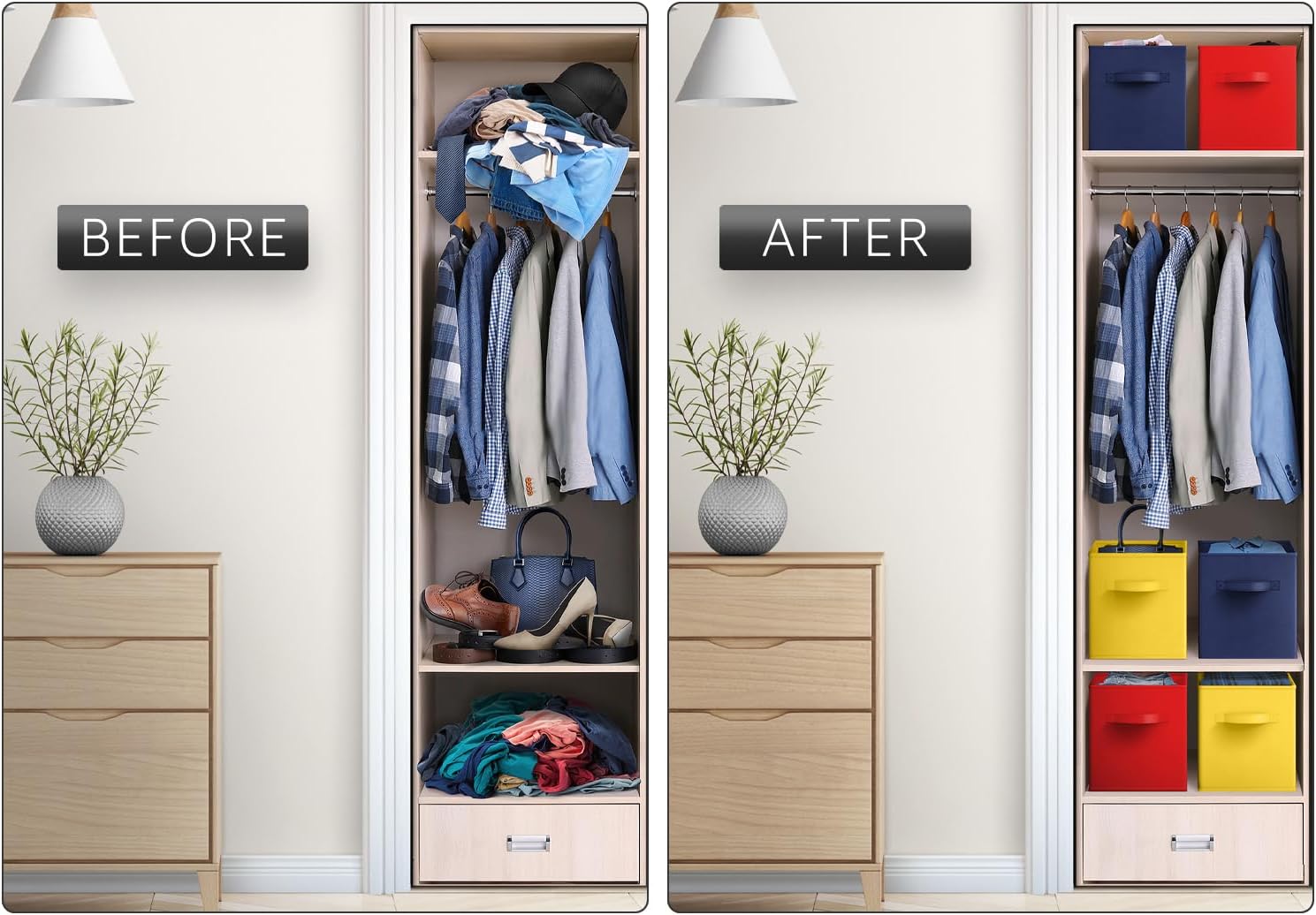 - Yellow Navy & Red Storage Bins: Sorbus Colorful Foldable storage basket set provides attractive, lightweight solutions to many organization and storage needs while keeping household items tidy and organized - Complete closet spaces, nurseries, and more. Sorbus Foldable Storage Cubes measure approximately 11" H 10.5 x 10.5 storage cubes