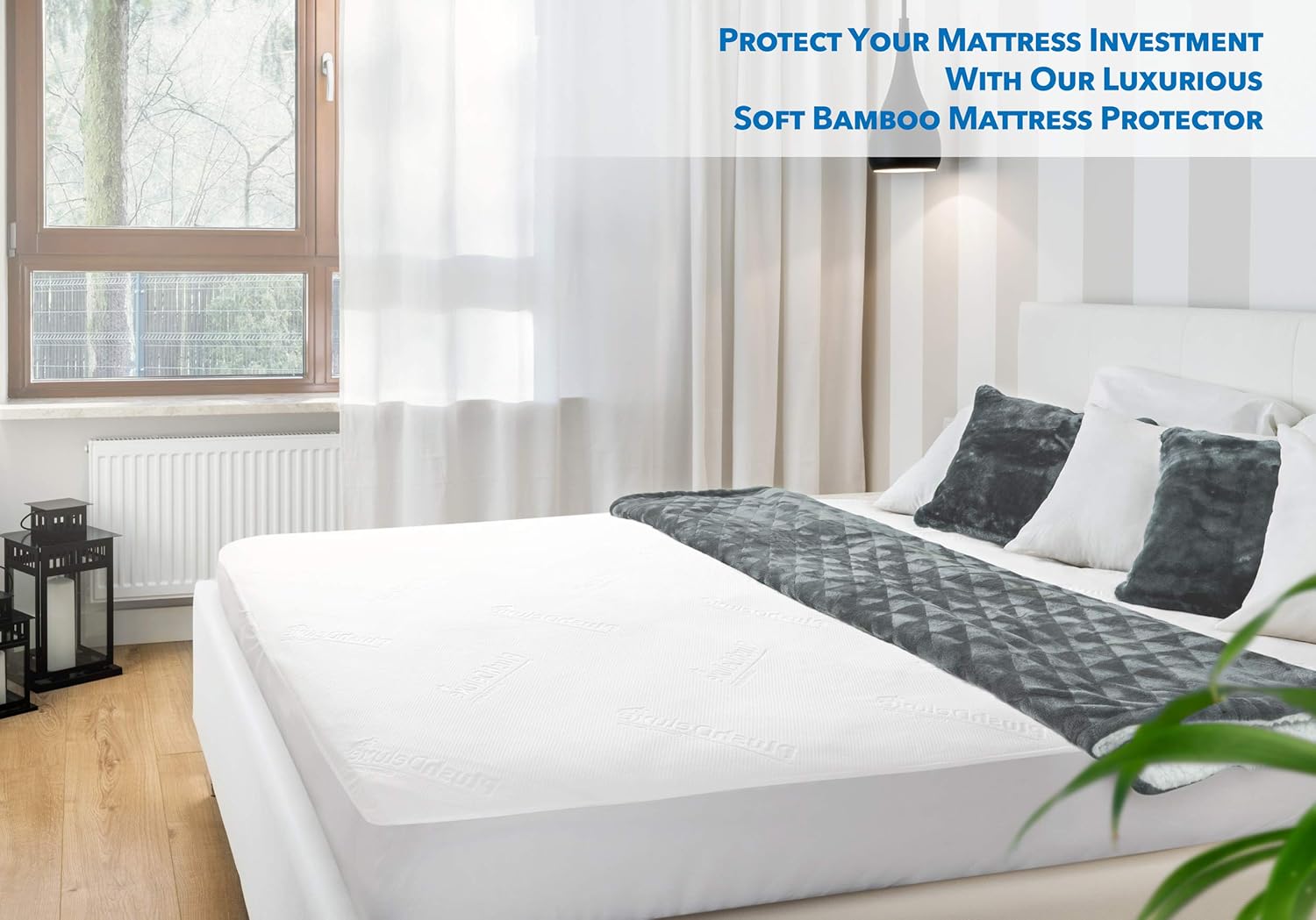 - SAFEGUARD YOUR INVESTMENT: Keep your expensive mattress in pristine condition with our Premium Cal-King Viscose Mattress Protector. Our ultra-soft mattress cover protects from dirt, water and normal wear & tear, so it stays clean and comfortable.