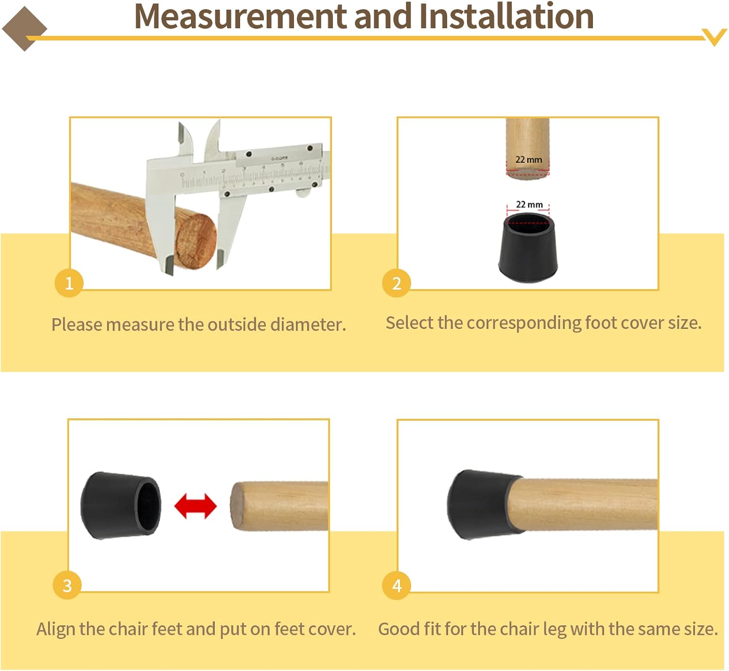 - 【Chair Leg Fitting】: Fit for furniture legs with 1/2" / 12 mm bottom diameter