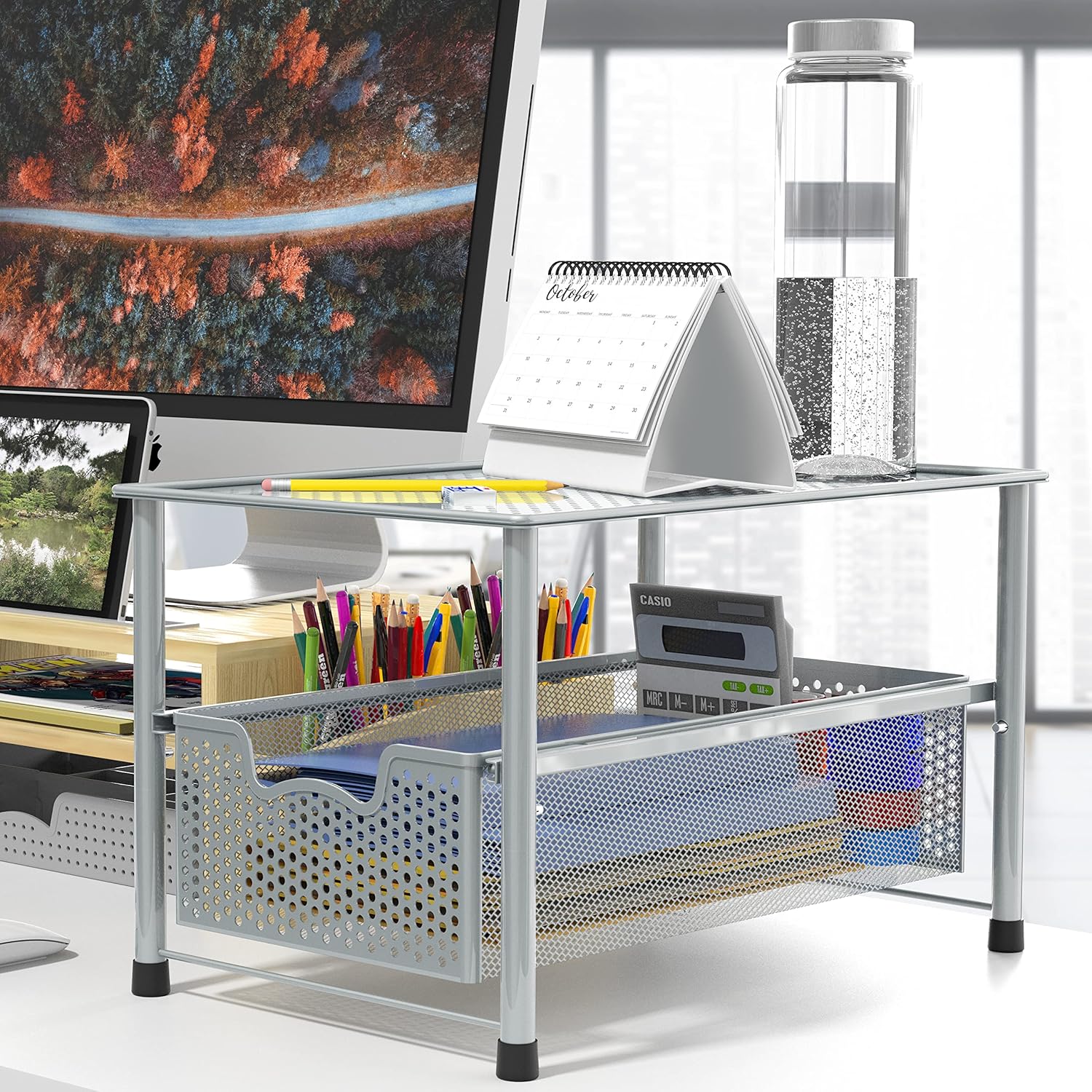 - Sliding basket for easy access in limit space and stackable design (Buy two sets and stack them together)