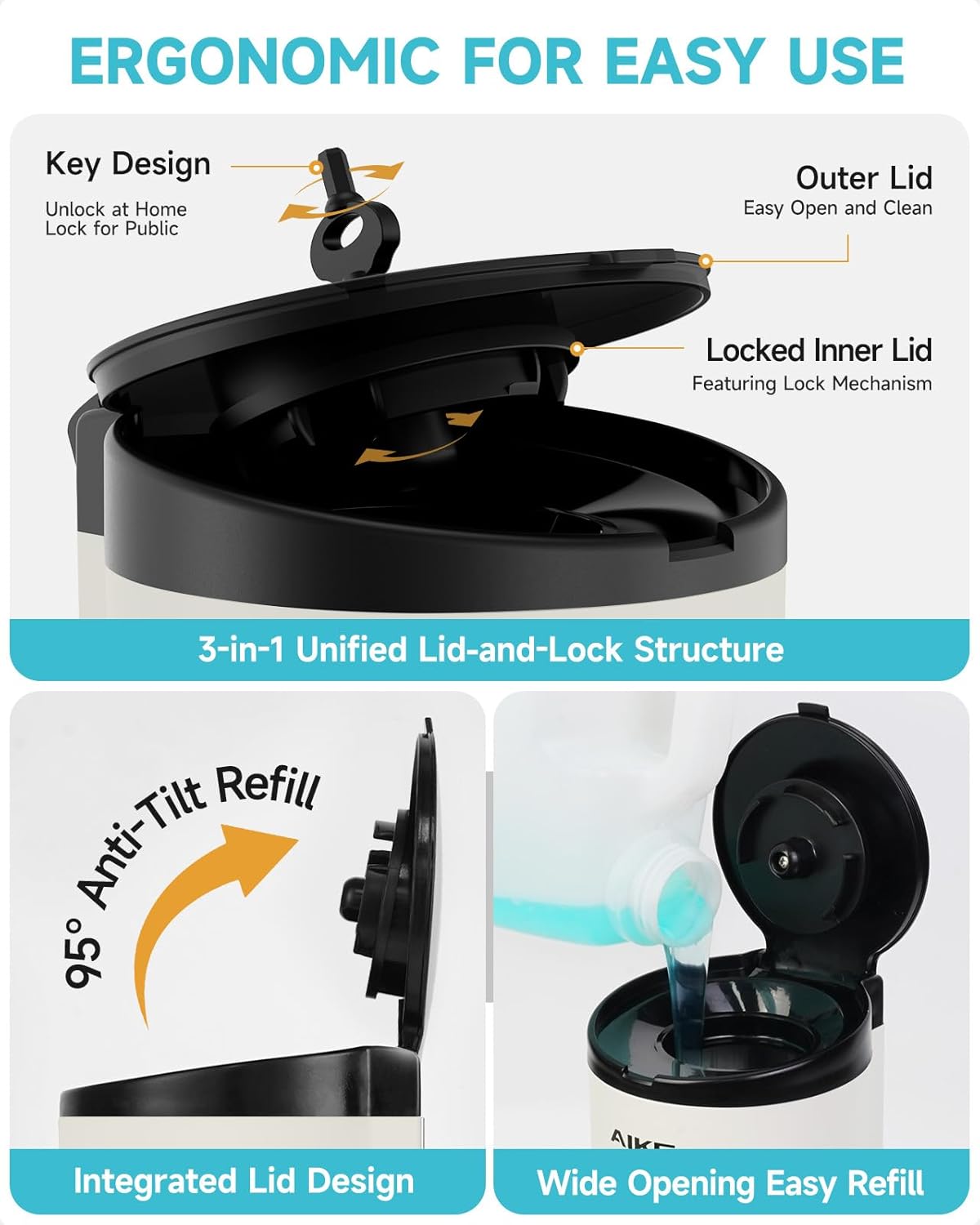 - Hassle-Free: 25oz Large Capacity Stainless Steel for Commercial Use. Touchless for All Family Members at Home