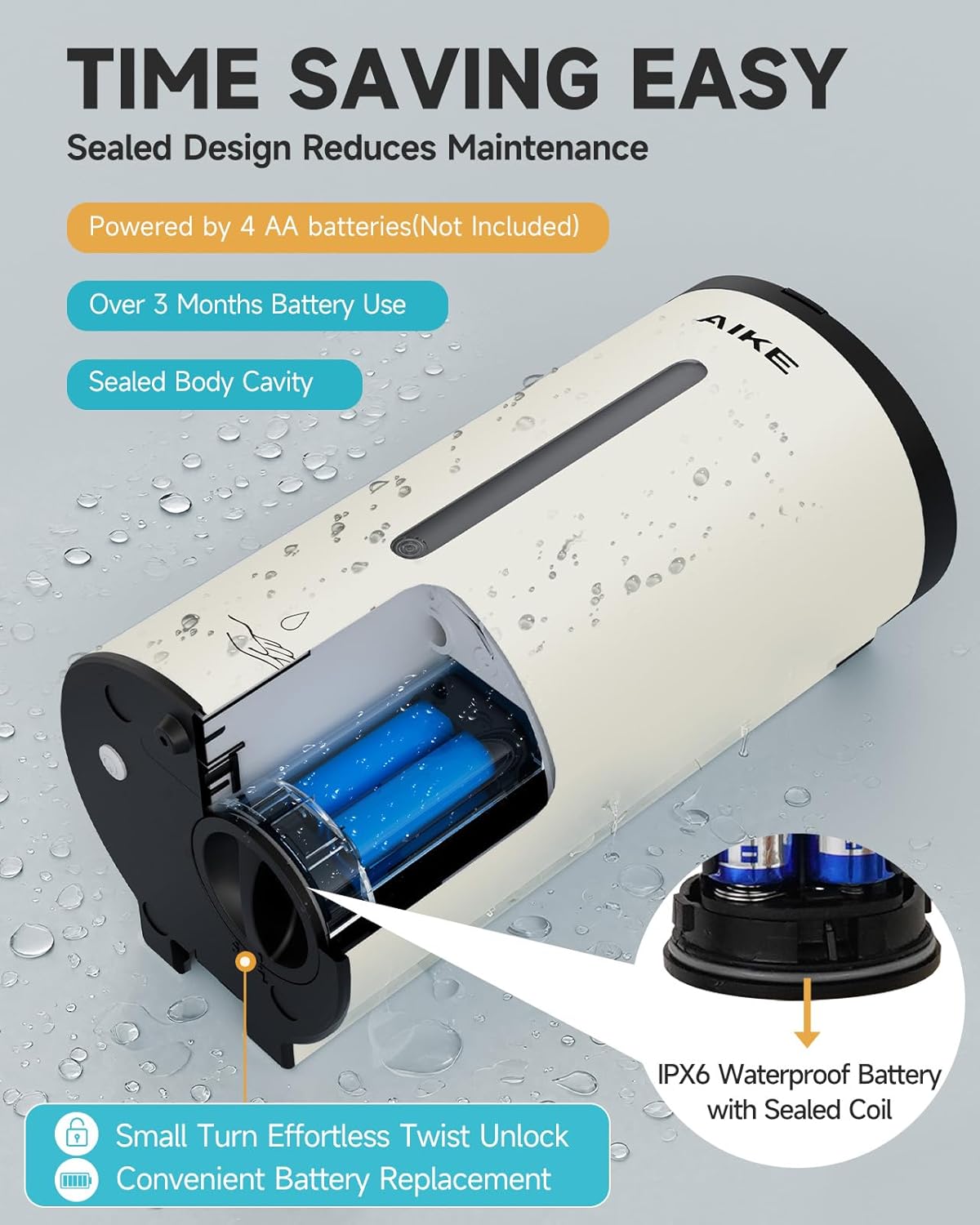 AIKE Automatic Wall Mount Liquid Soap Dispenser, Commercial Stainless Steel with 25oz Large Capacity Save Time Effort and Cost,Model AK1205 (Matte White)