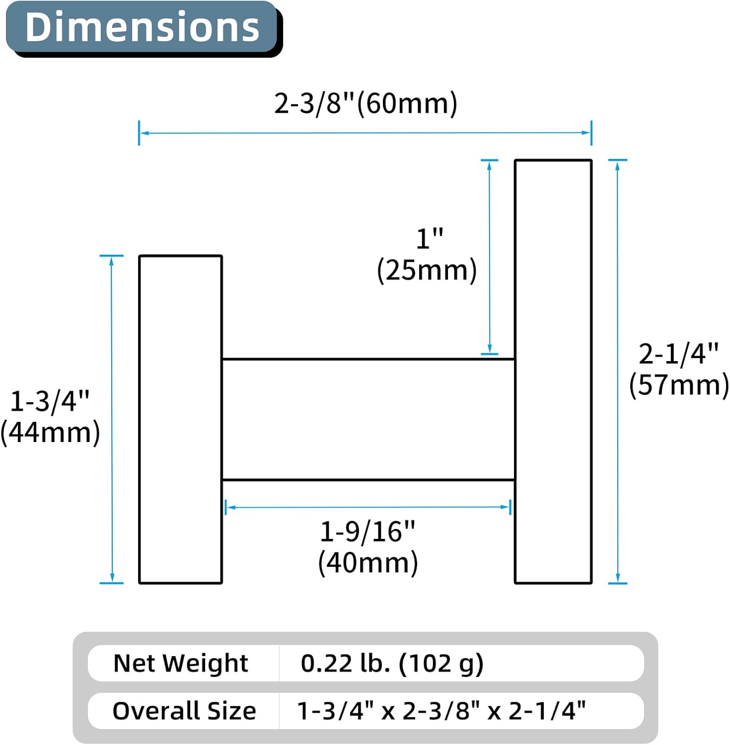 - HEAVY DUTY MOUNTING: mounting hardware is included for easy installation, handles a good amount of weight without wobbling if anchored properly. Dimensions of the hook (L*D*H): 1-3/4" x 2-3/8" x 2-1/4"