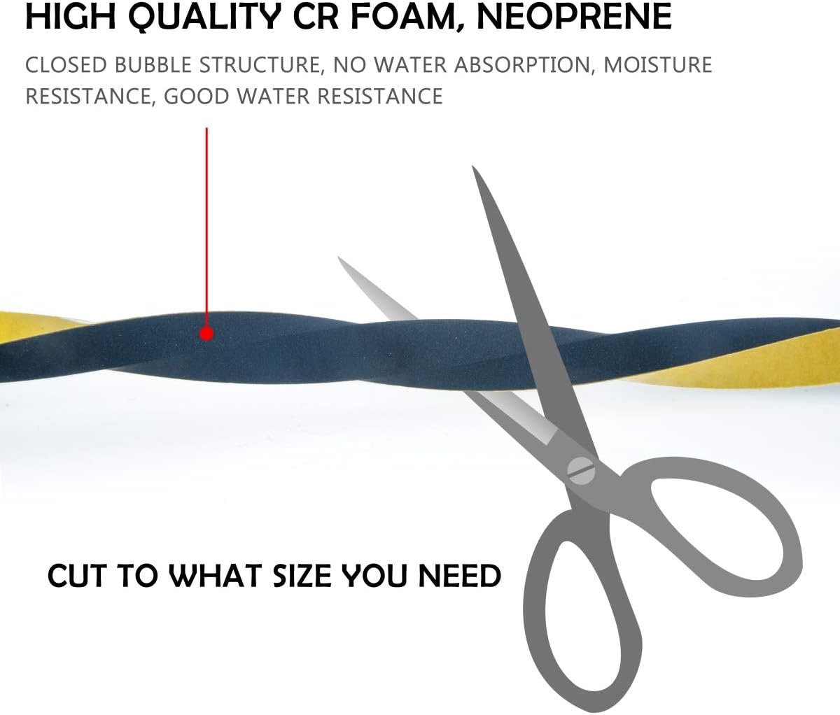 - 【ADJUSTABLE & FLEXIBLE】This package includes 2 rolls of 1/2 in x 1/4 in x 13 ft foam tape, total 26 feet long. The Neoprene sponge foam tape is easy enough to customize and cut to size with scissors or blade, and bend easily and conform to any shape.We used a high quality, ultra-strong adhesive backing that ensures this insulation foam tape stays in place indefinitely once applied. You are therefore assured that it will not peel off.
