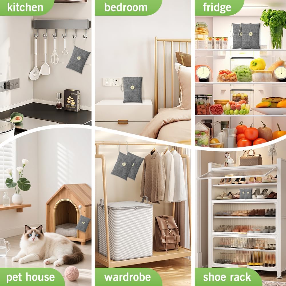 - 【SUITABLE FOR FAMILIES】 Charcoal bags are made from environmentally friendly micro-porous activated bamboo charcoal, contains millions of tiny porous holes that can create a healthy atmosphere in your home.