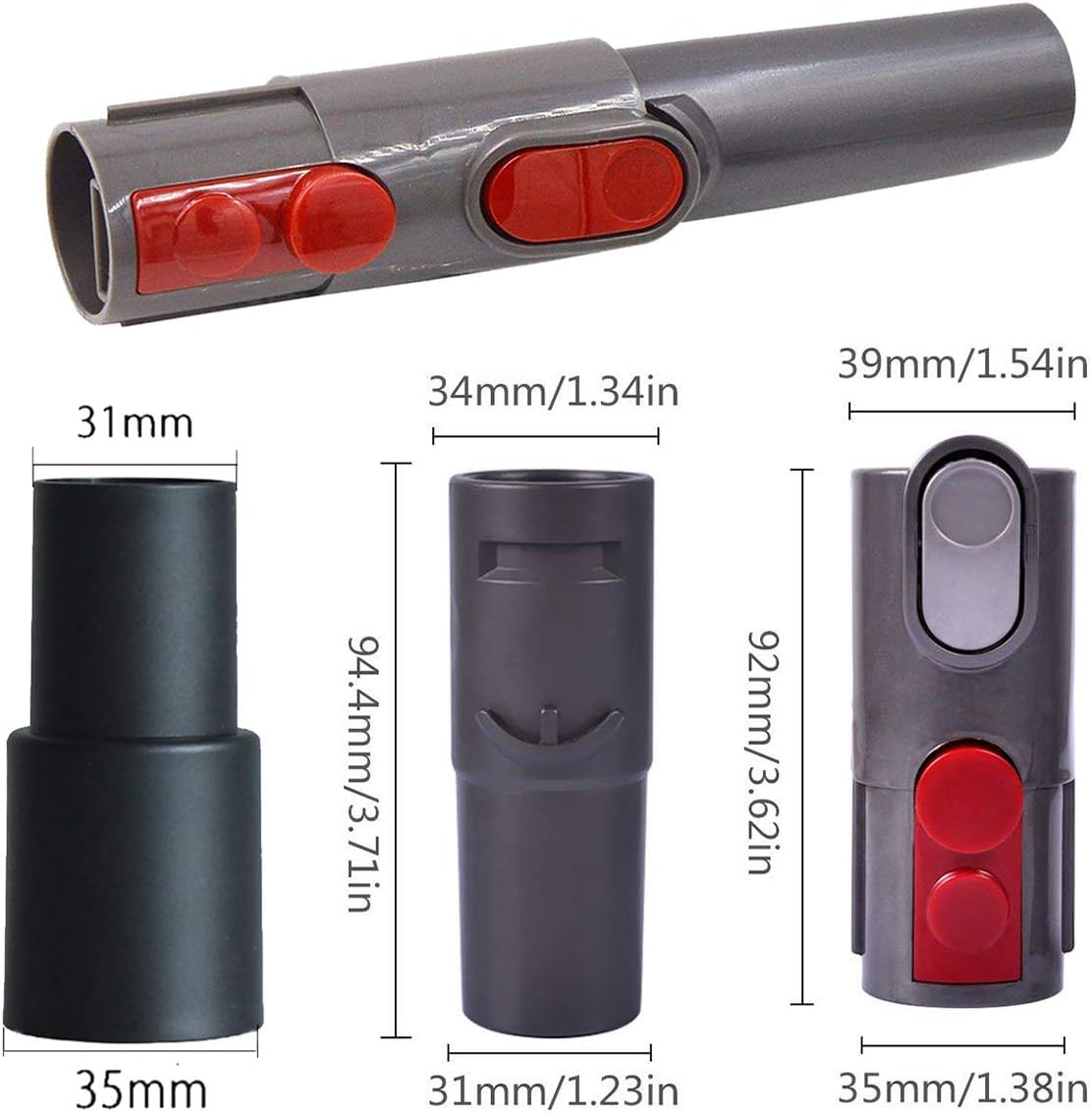 - The Dryer Vent Vacuum Cleaner Attachment Are 3 Adapters,Can make your Dyson V8 V7 V10 vacuum use attachments tools from Dyson V6 DC41 DC24 DC25 DC34 DC35 DC40 DC50 DC59 Etc.