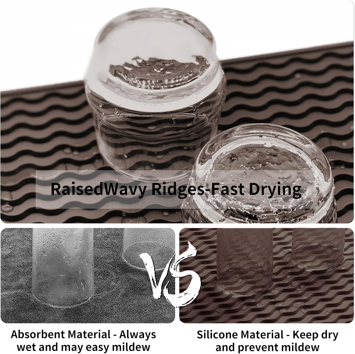 ZLR Silicone Dish Drying Mat for Kitchen Counter, Eco-Friendly Fast Dry Dish Mat, Easy Clean Multi Usage Drying Matt, Heat Resistant Trivet, 12" x 16" Large, Coffee