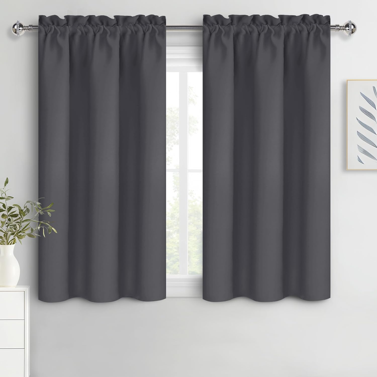 DWCN Blackout Curtains for Bedroom 54 Inch Length 2 Panels Set, Solid Thermal Insulated Energy Saving Rod Pocket Window Treatment Curtains Blackout Drapes (W38 x L54 Inch, Dark Grey)