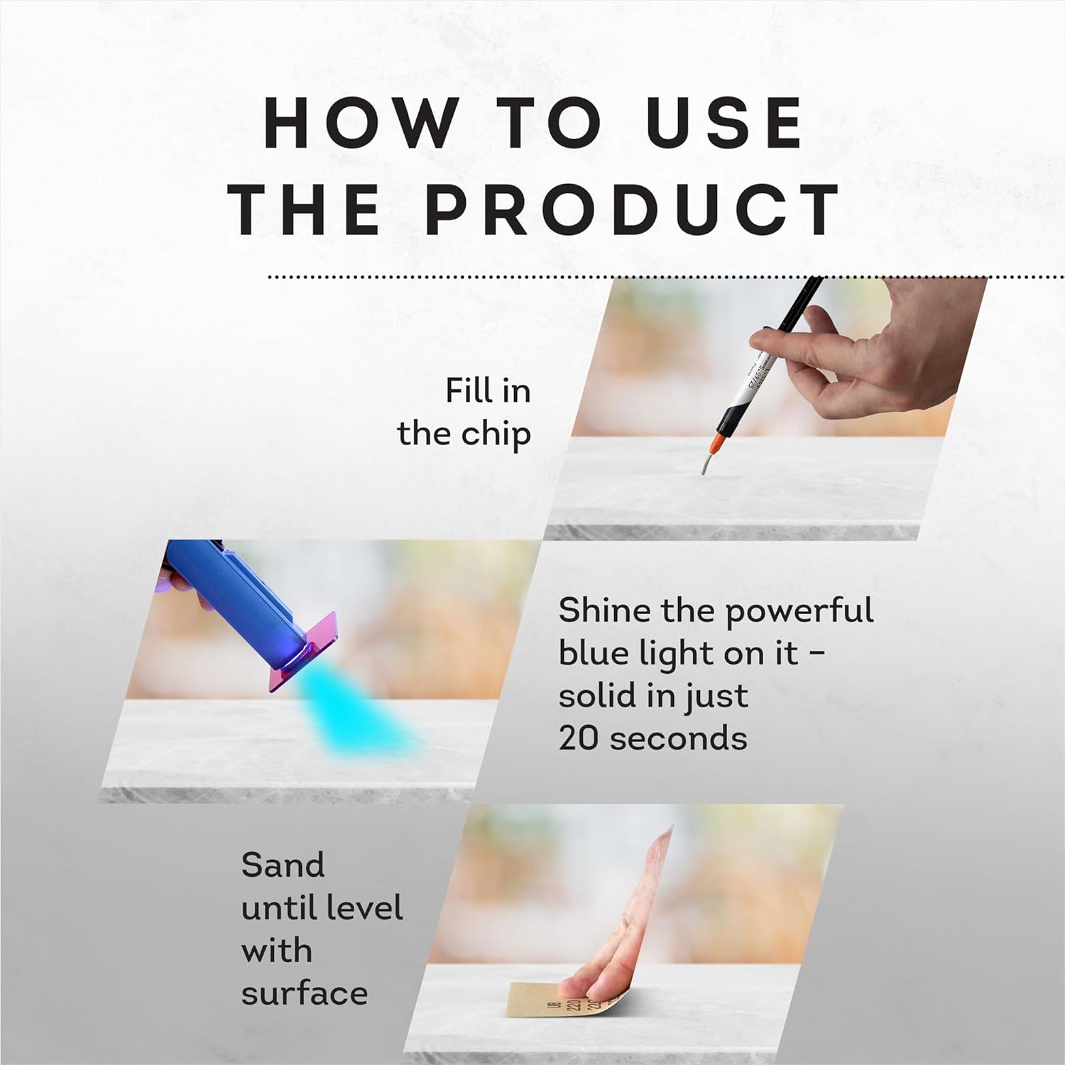 - REFILL FOR THE FASTEST SURFACE REPAIR KIT: The refill includes everything except the blue light unit you already have if you purchased the entire kit before. That means you can continue repairing chips in record time without piling up things you don't need.