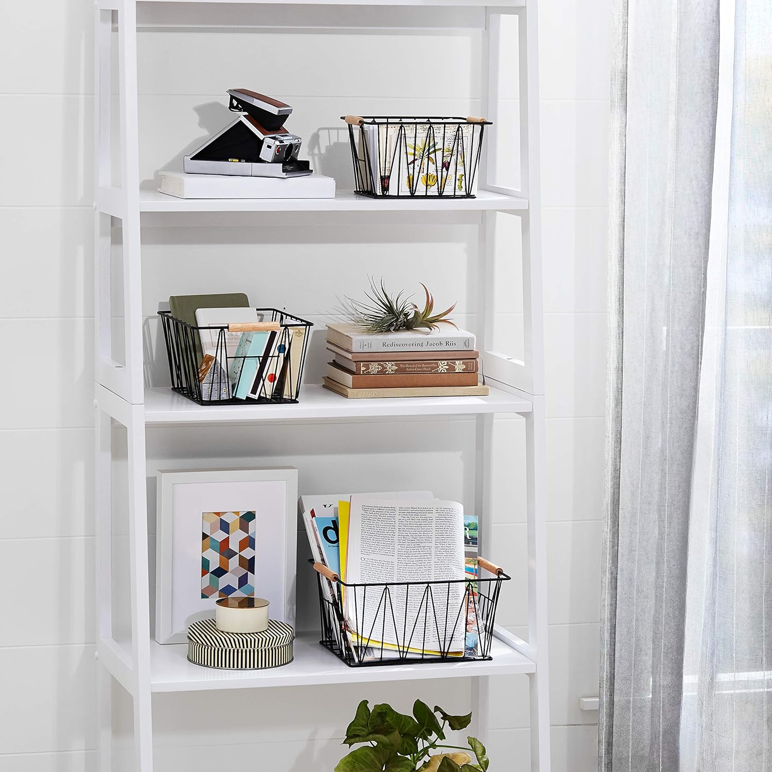 Amazon Basics Rectangular Wire Storage Baskets, Set of 3, Standard, Black
